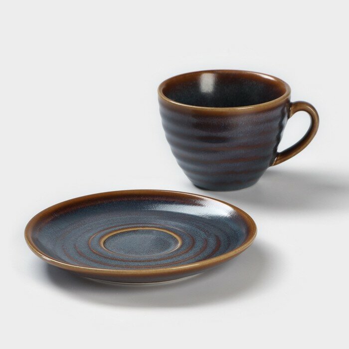 Чайная пара фарфоровая, кофейная пара Magistro Urban, чашка 200 мл, блюдце d=14,2 см