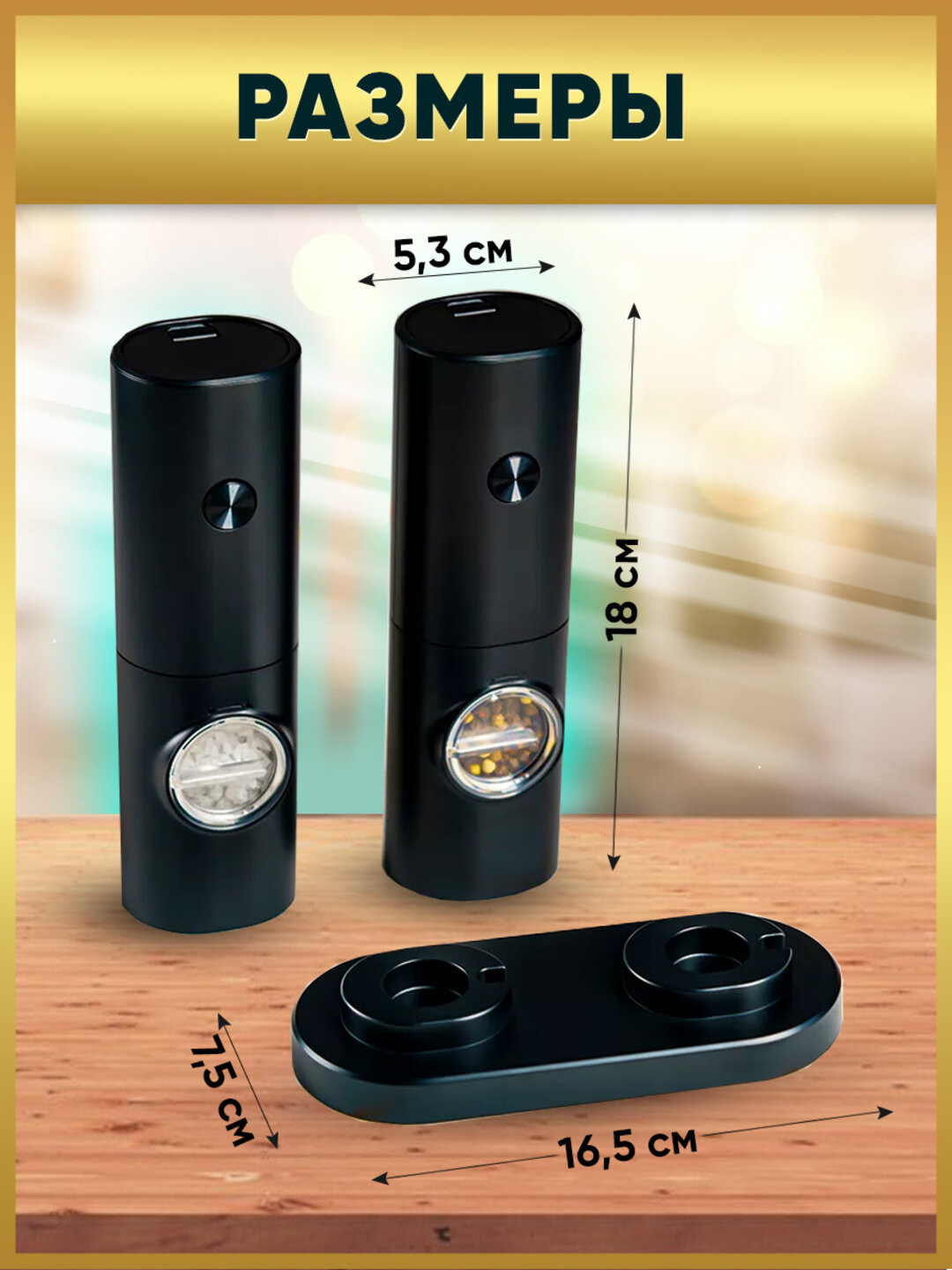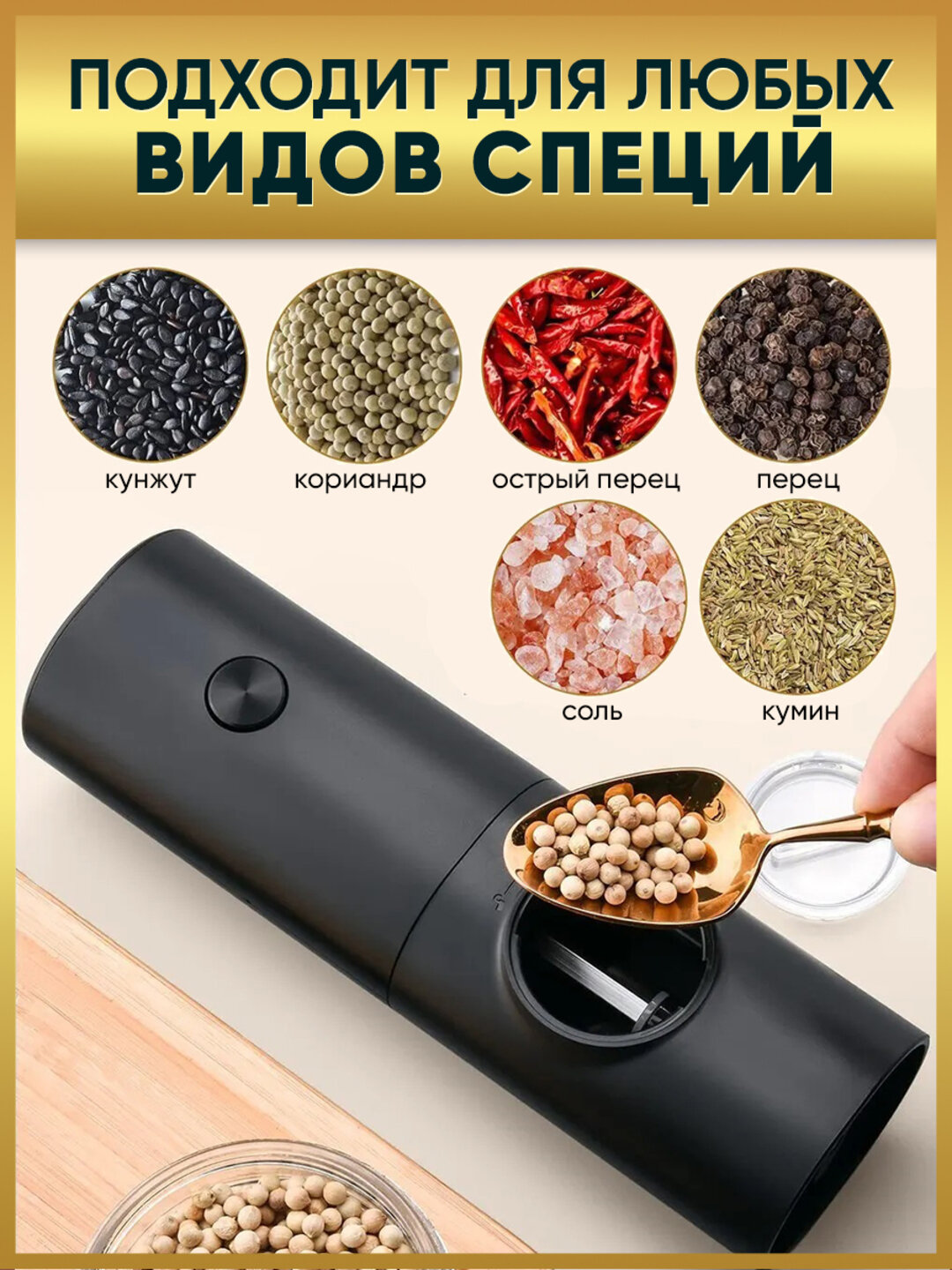Электрическая мельница для специй, 2шт, с подсветкой и регулировкой мощности + батарейки интересное:
