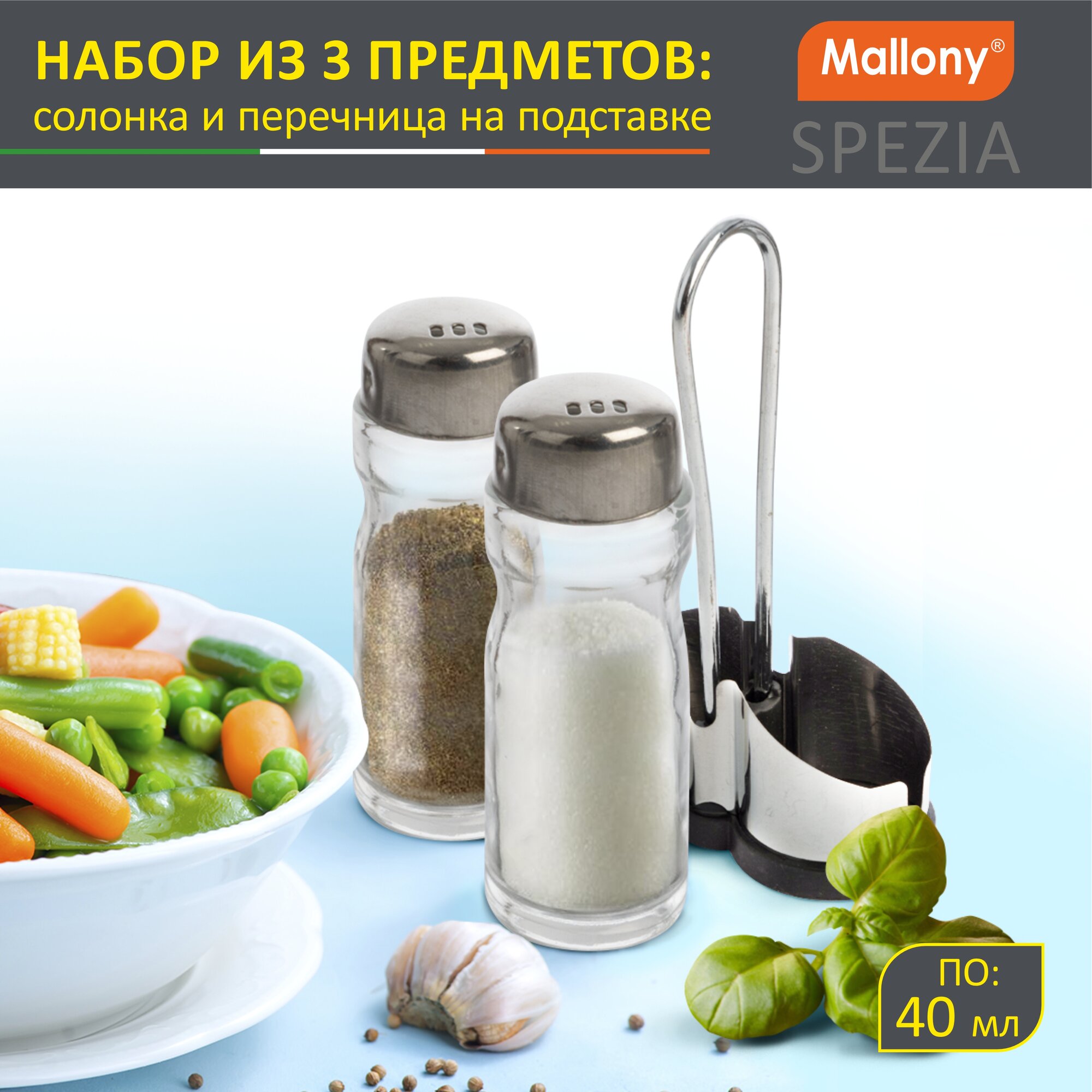Набор из 3 предметов : солонка 40 мл и перечница 40 мл из стекла на подставке из нержавеющей стали интересное: