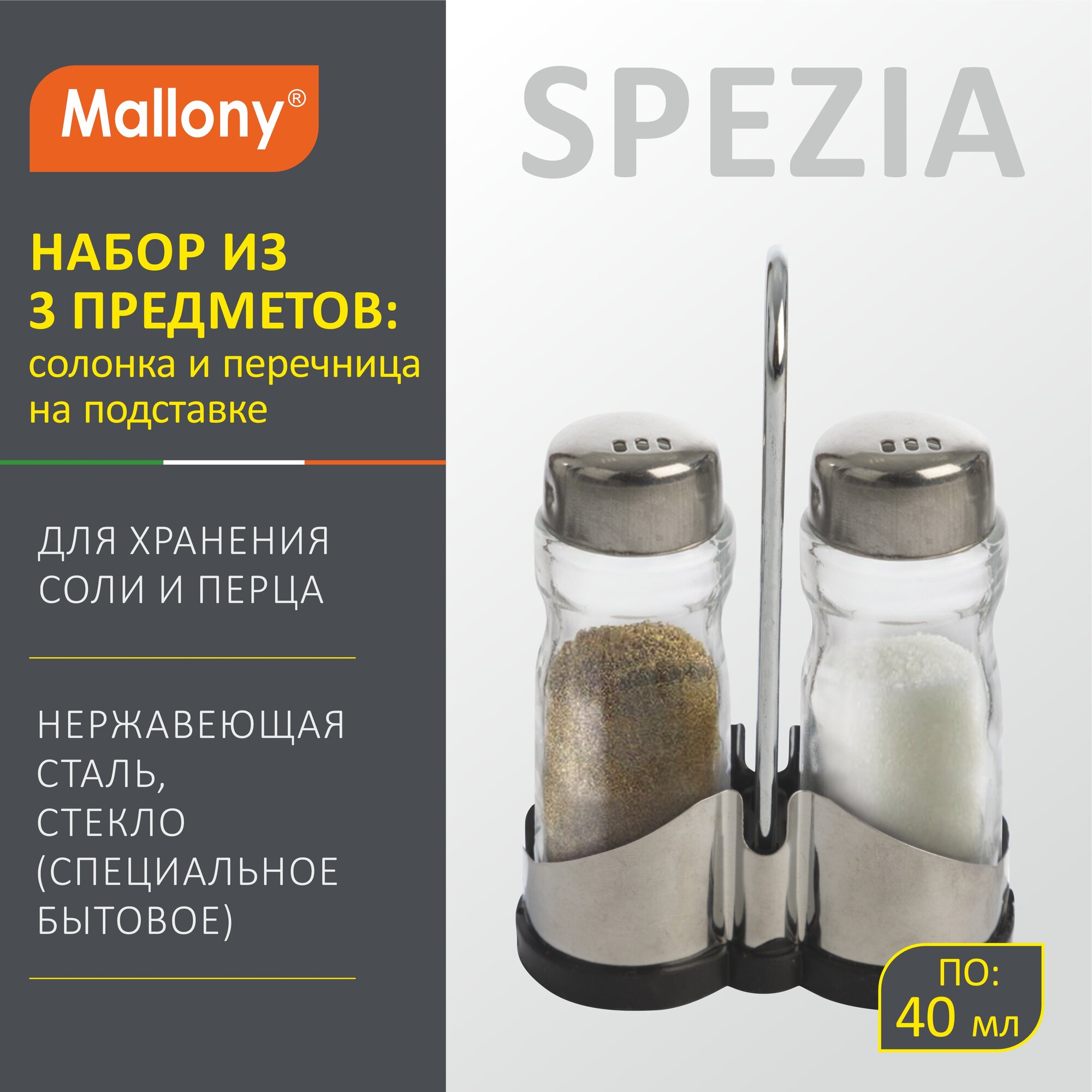 Набор из 3 предметов SPEZIA солонка 40мл и перечница 40 мл на подставке (нерж.сталь, стекло) (009367)