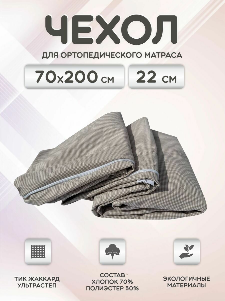 Чехол-наматрасник на ортопедический матрас Гарантия Уюта защитный, тик, на молнии, высота 22 см, 80х200 см