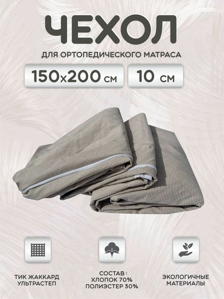 Чехол-наматрасник на ортопедический матрас Гарантия Уюта защитный, тик, на молнии, высота 22 см, 150х200 см