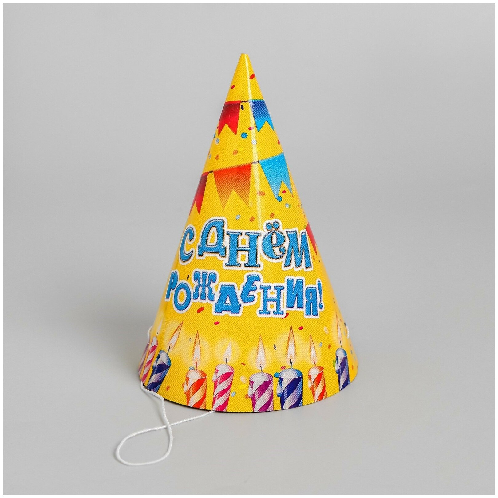 Набор праздничных колпаков "С Днём Рождения", 6 штук, свечи и гирлянда, для детей и малышей