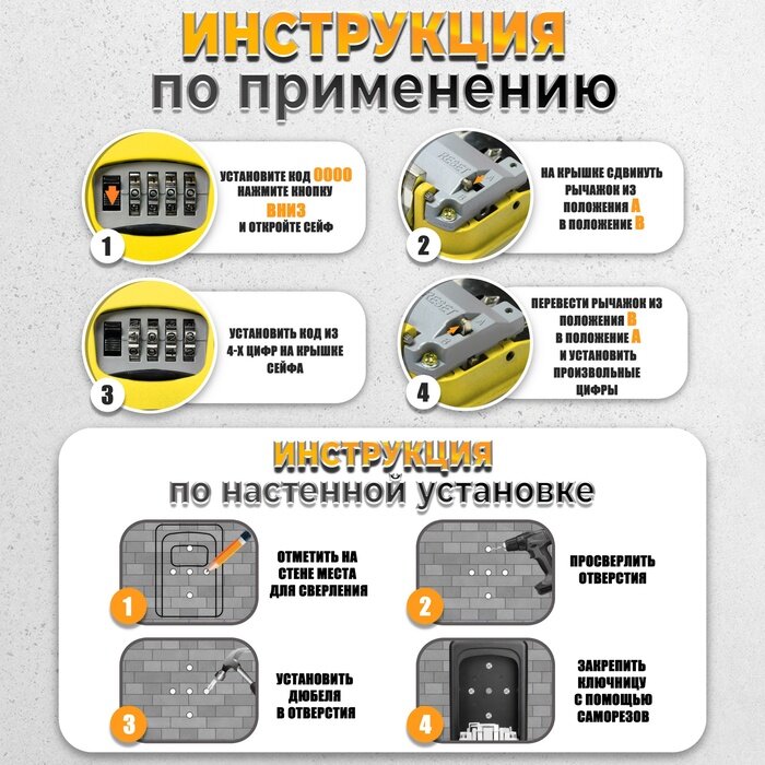 Сейф-ключница кодовая тундра LIGHT, цвет желтый тундра 9437147 . интересное: