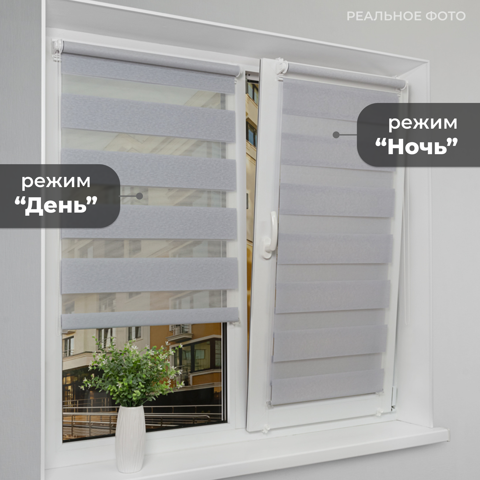 СохранитьРулонные шторы LM DECOR "Сити" 02 День/Ночь Светло-серый 64х160 см интересное: