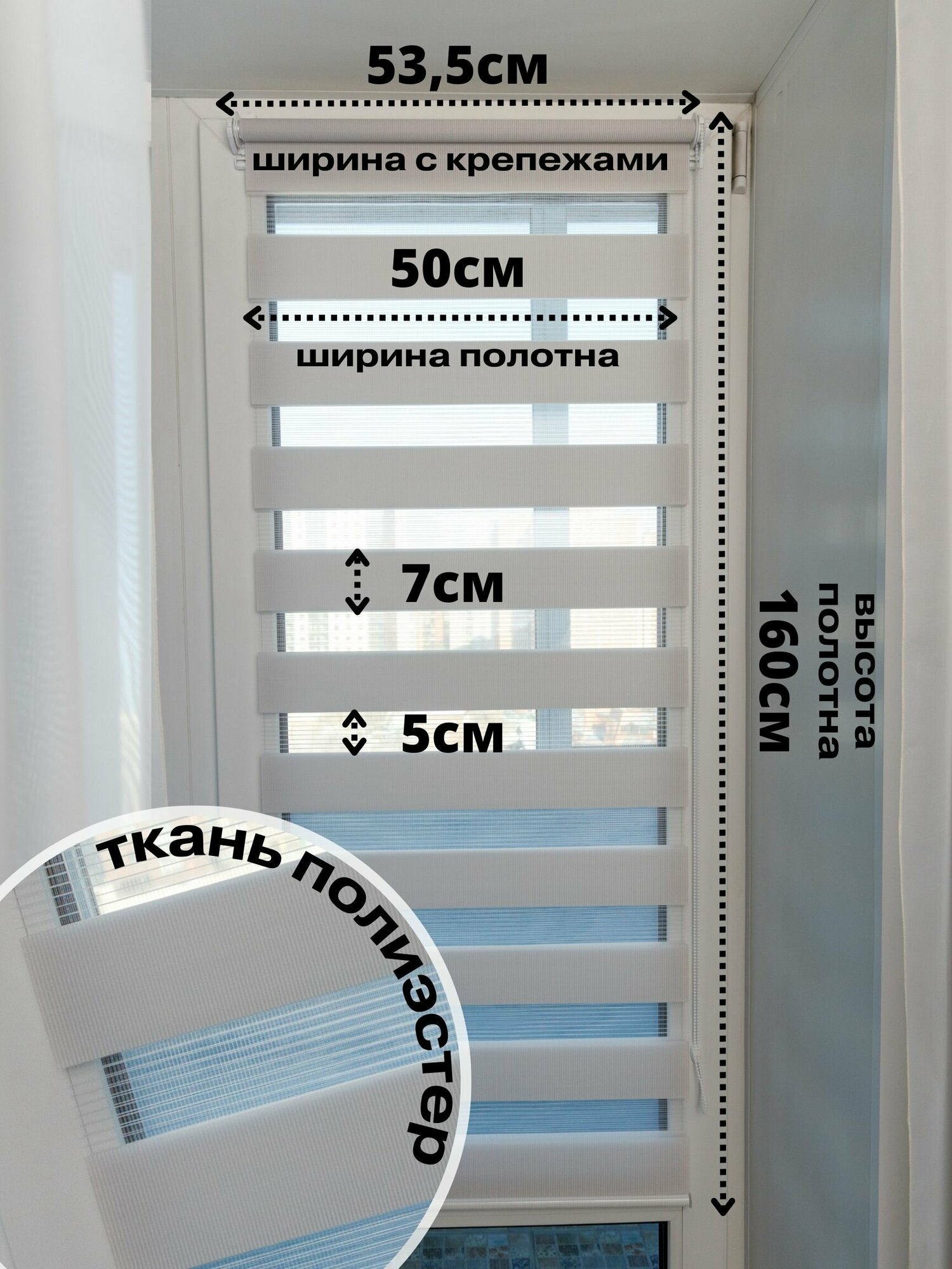 Рулонные шторы день ночь ширина 52см, высота 160 см белые жалюзи на окна Зебра для кухни, спальни, детской, на балкон