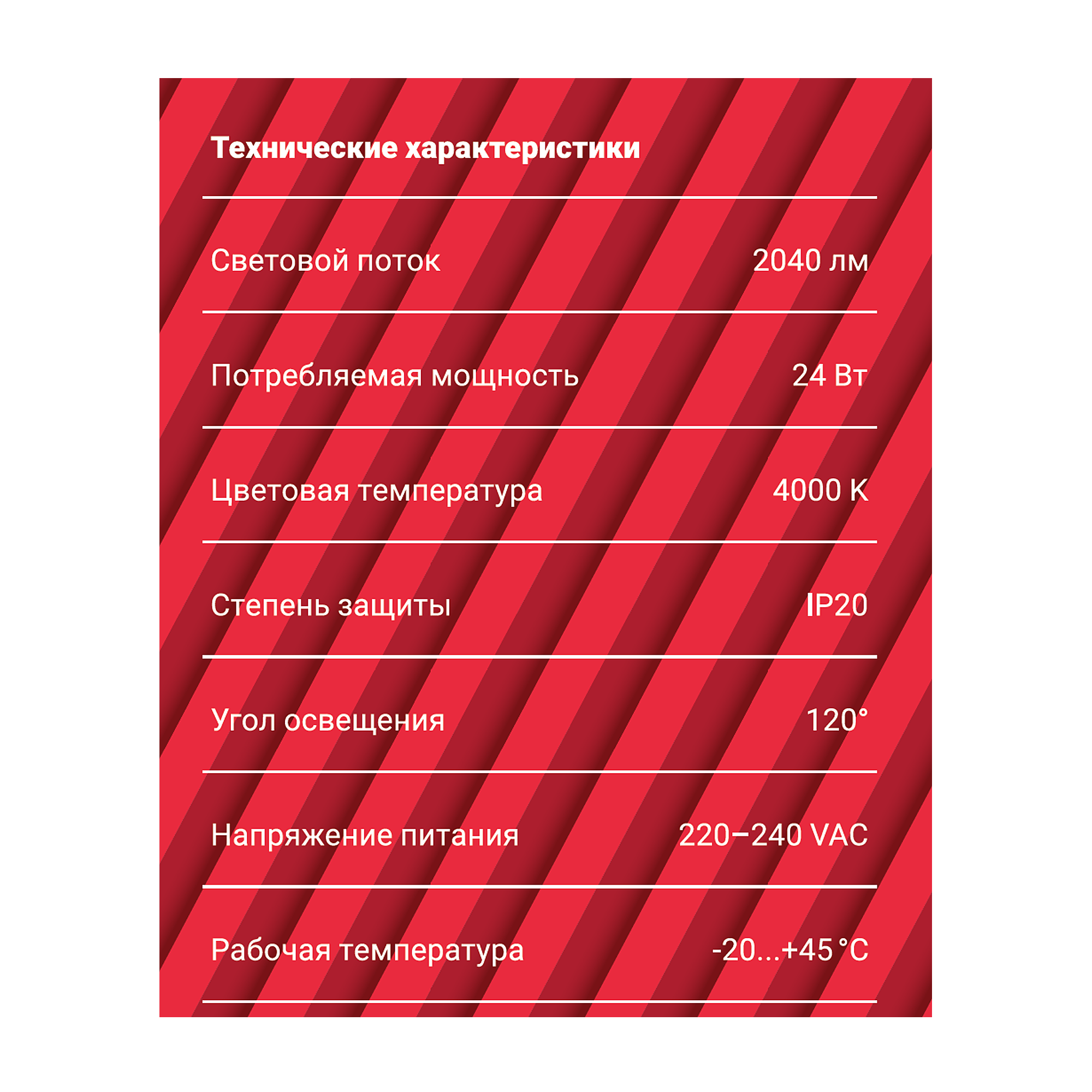 | Комплектация | Светильник встраиваемый REV SuperSlim Quadro 12Вт 4000К 170мм белый |
