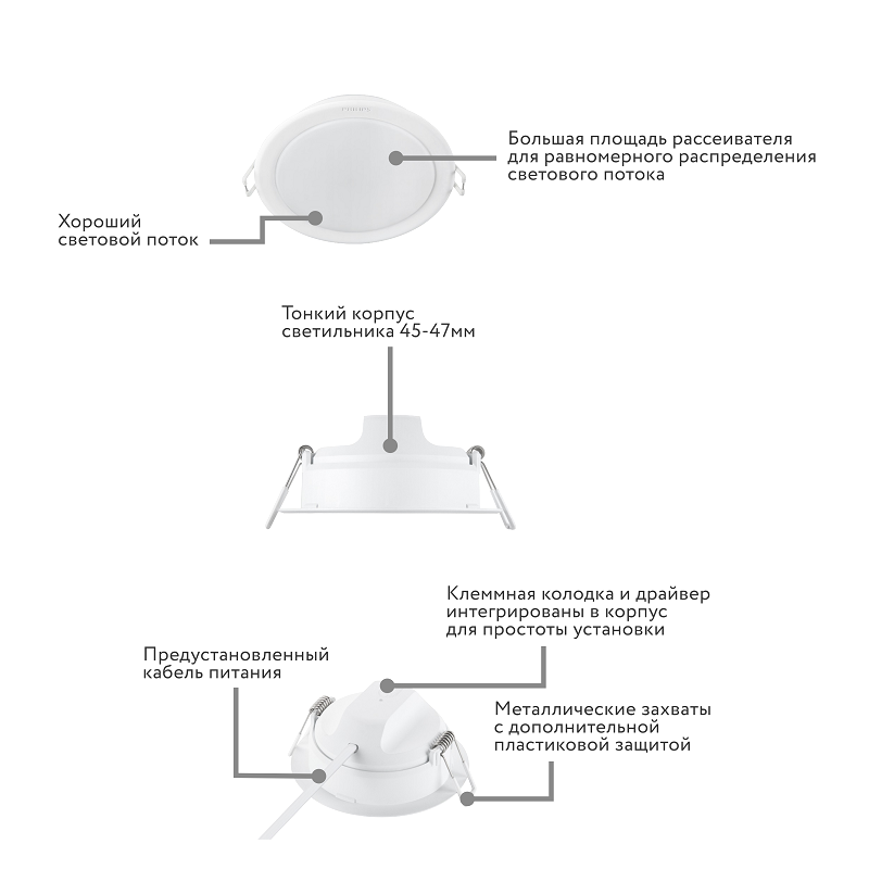 Светильник downlight Philips 59449 MESON 105 9W 40K WH 600lm (встр-мый d-105 D-120 H-46)- LED свет-к интересное: