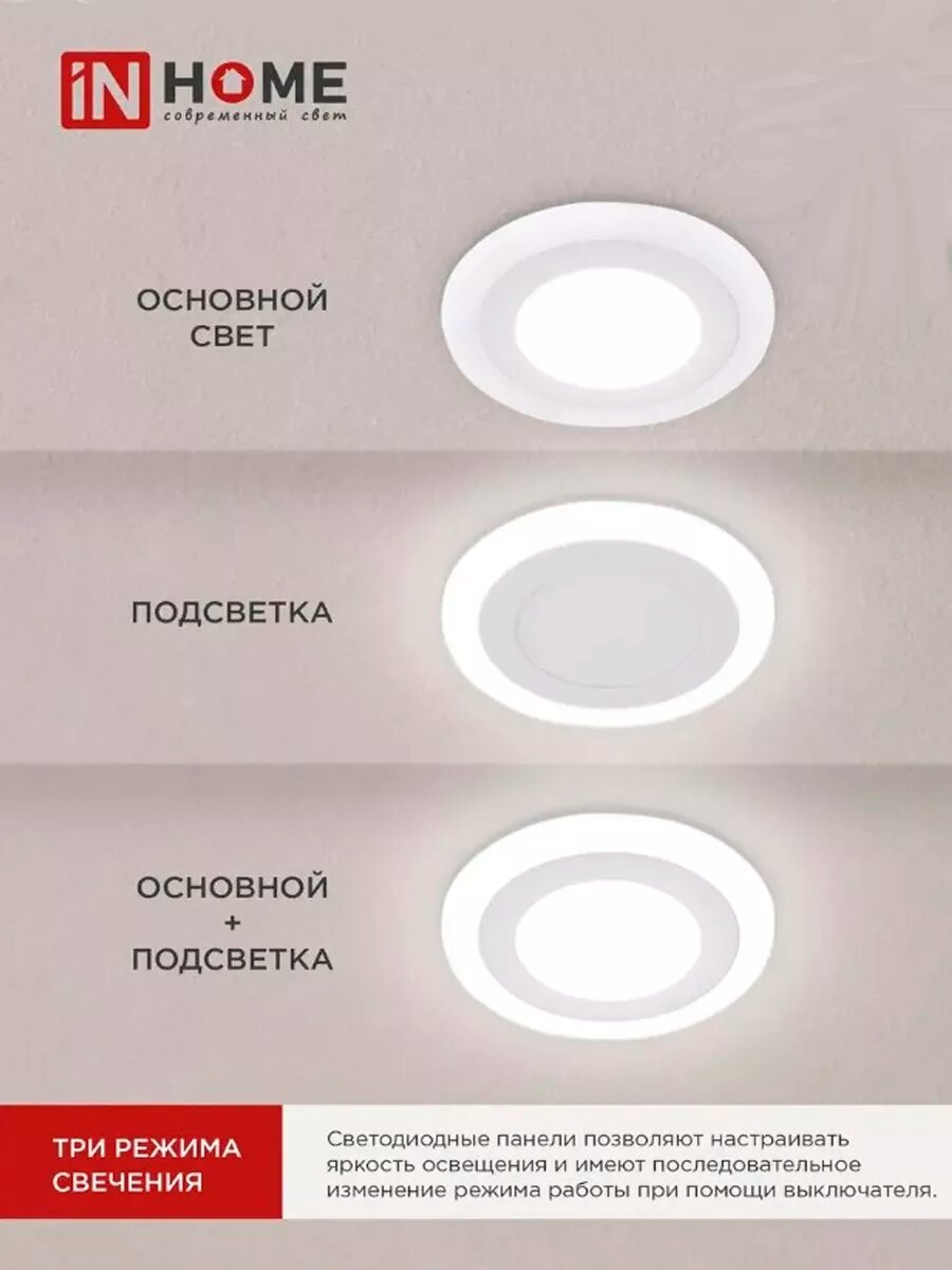 IN HOME Панель сд встраиваемая круглая RLP-BL 9Вт 230В 4000К 540Лм 145мм с подсветкой белая IP20 (арт. 4690612032962)