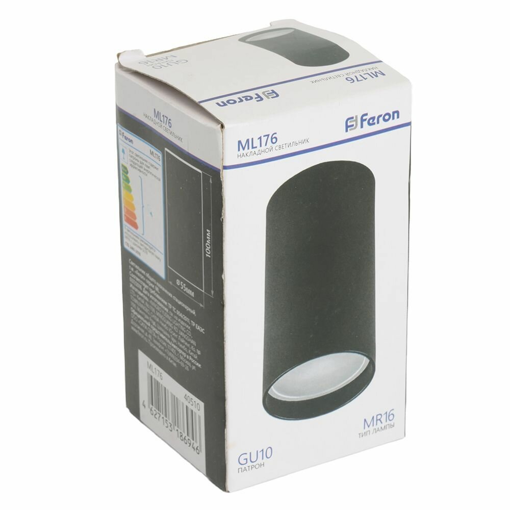 Feron светильник накл. спот (ИПО) ML176 GU10 20W 220V IP20 черн. металл 55x100 40510 (арт. 715906)