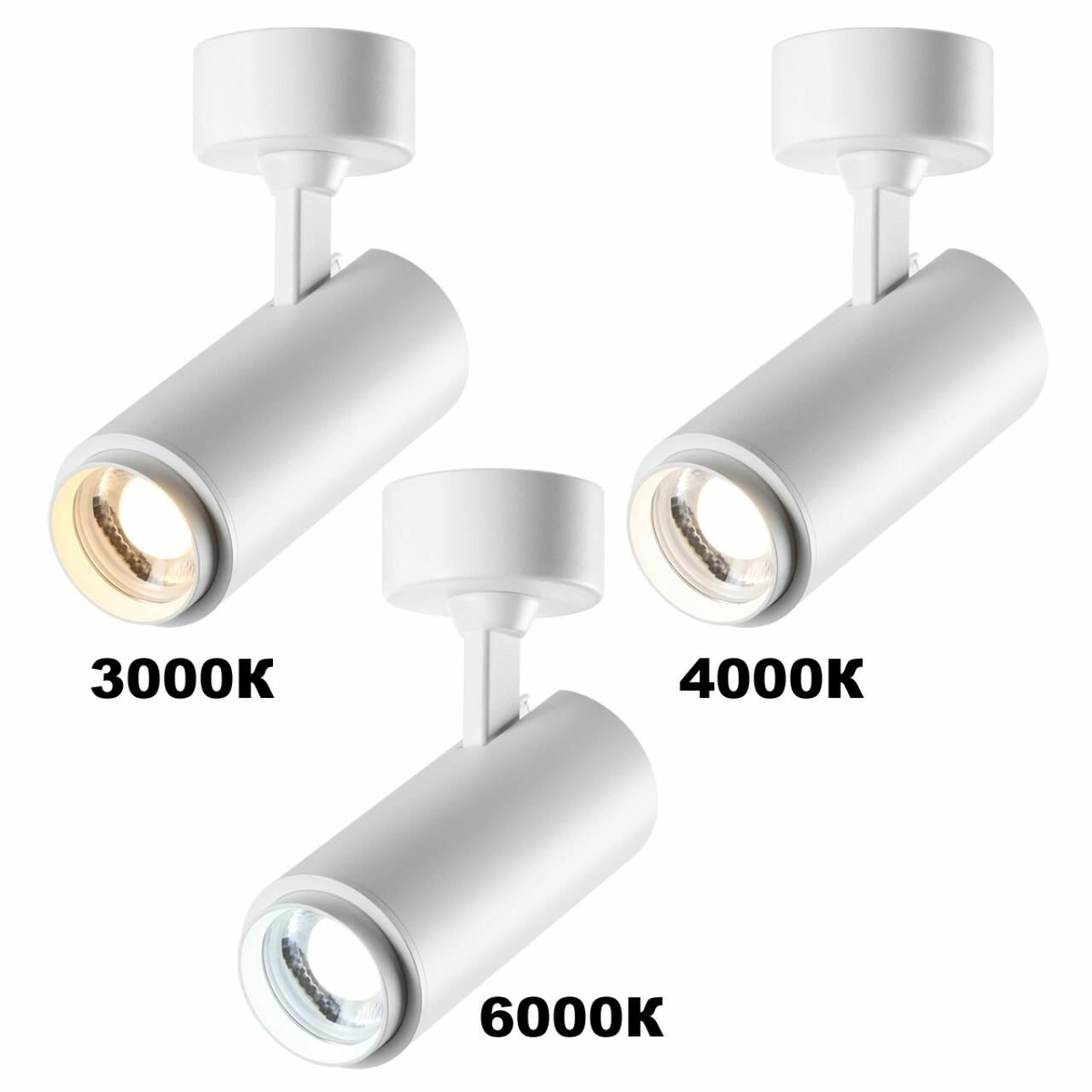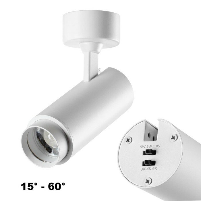 Трехфазный белый 359030 трековый светильник с переключателем цветовой температуры и мощности IP20 LED 3000К\4000К\6000К 5W/9W/13W 220V N