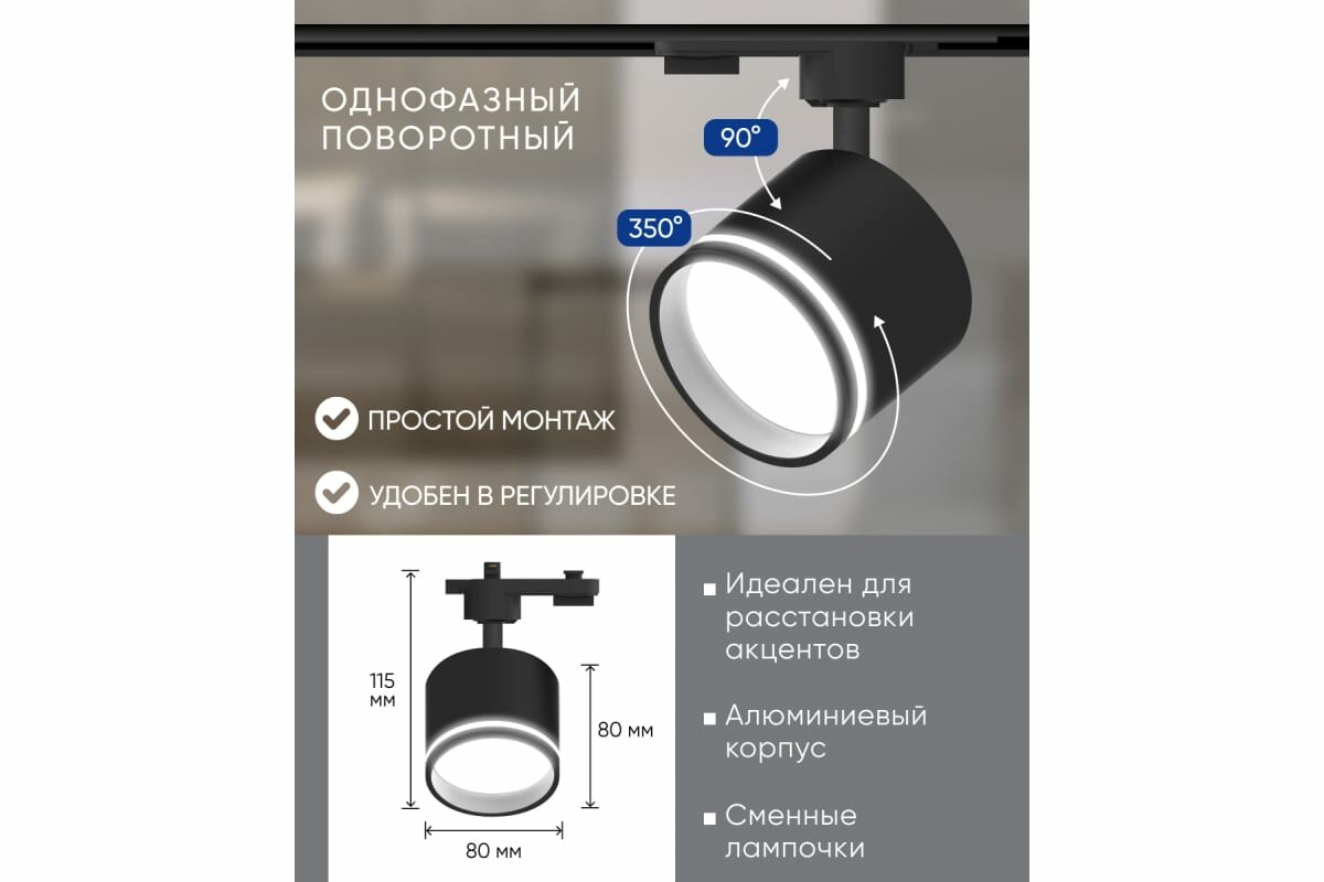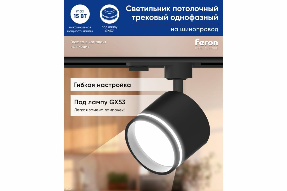 Трековый светильник FERON AL163, однофазный на шинопровод, под лампу GX53, поворотный, черный