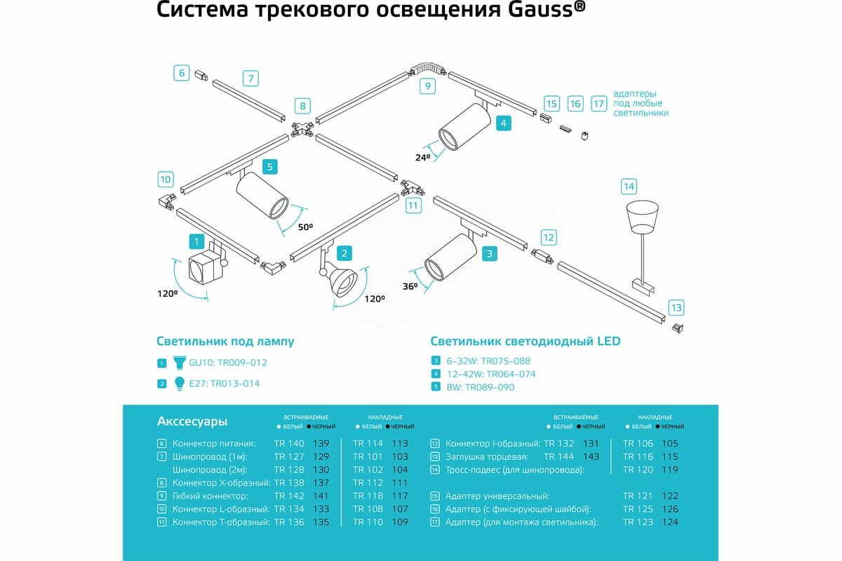 | Подробная комплектация | Споты и трек-системы Gauss TR069 |