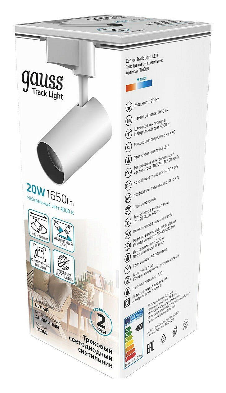 Трековый светильник-спот gauss TR081, 4000 К, белый