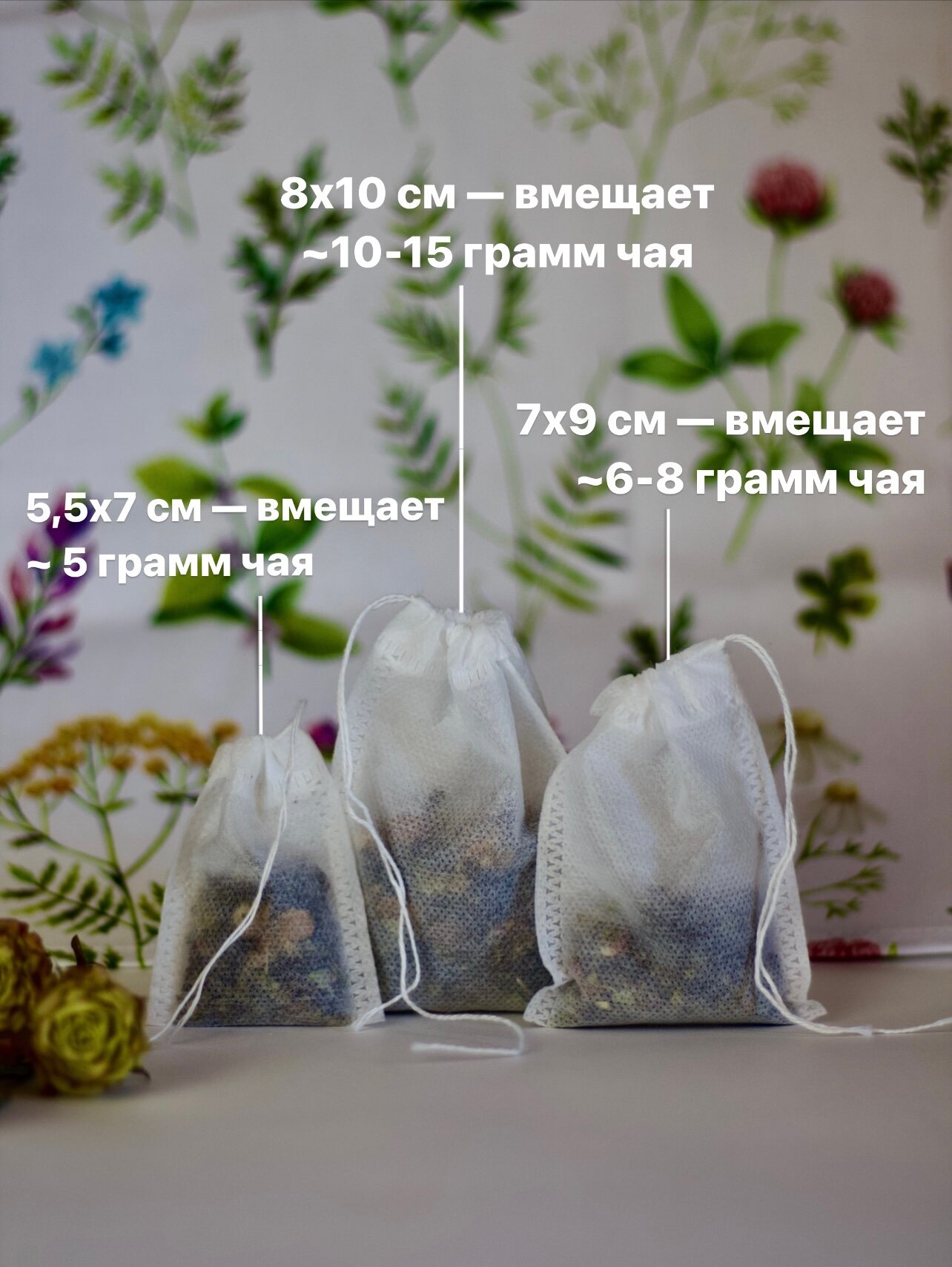 Фильтр - пакеты для заваривания напитков с завязками, пакетики для чая 100 шт, размер 5,5*7см