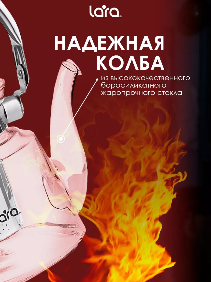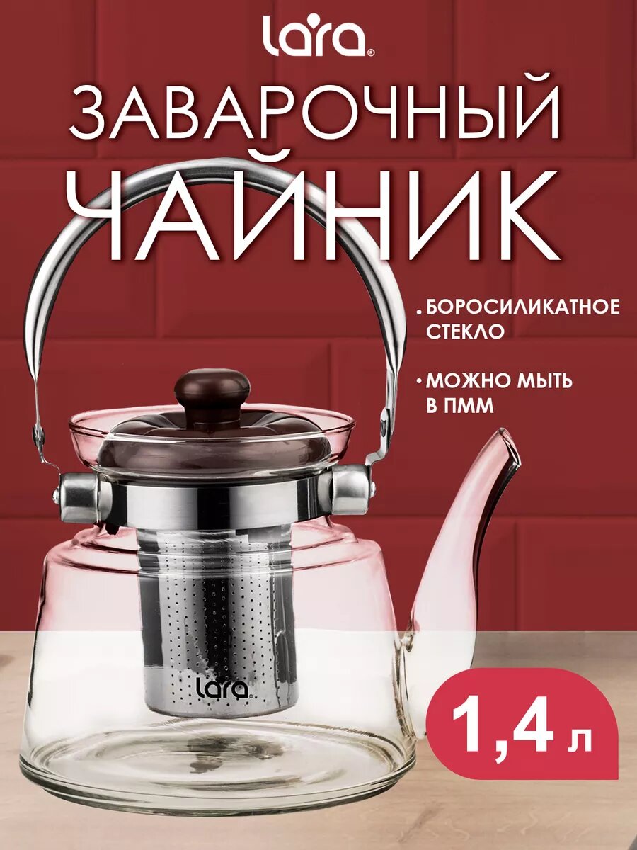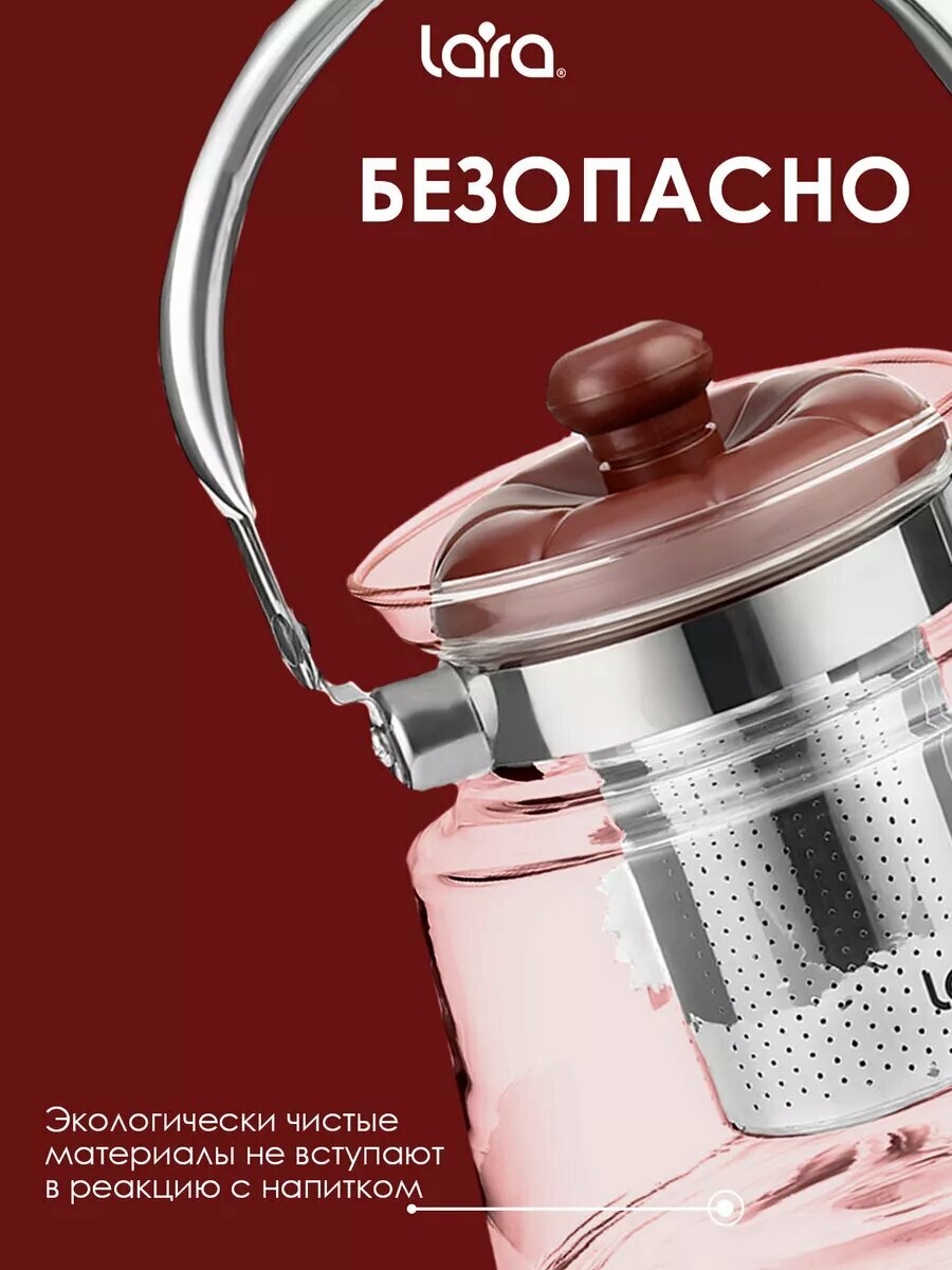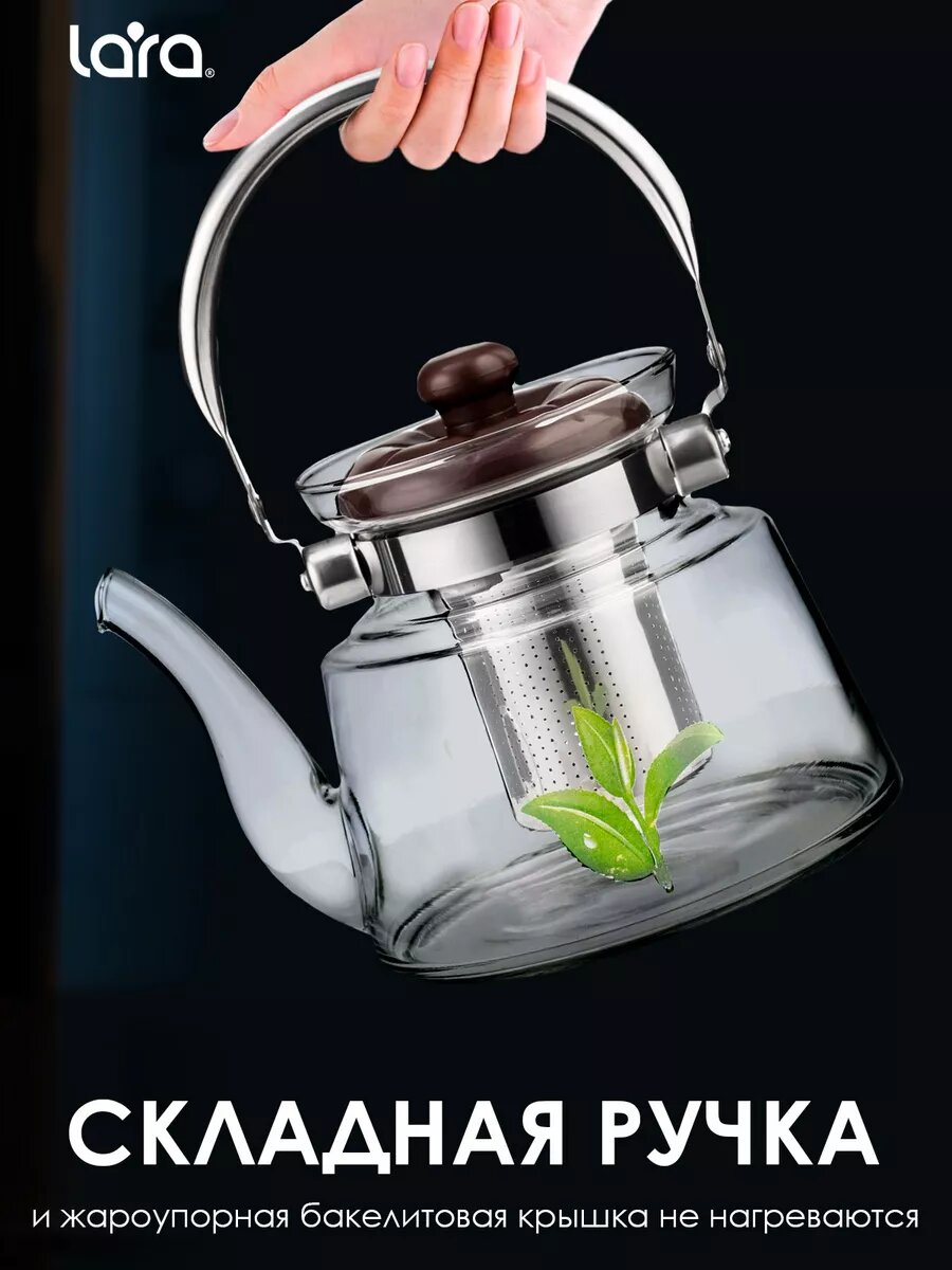 Чайник заварочный Lara, LR06-12, боросиликатное стекло, 1л