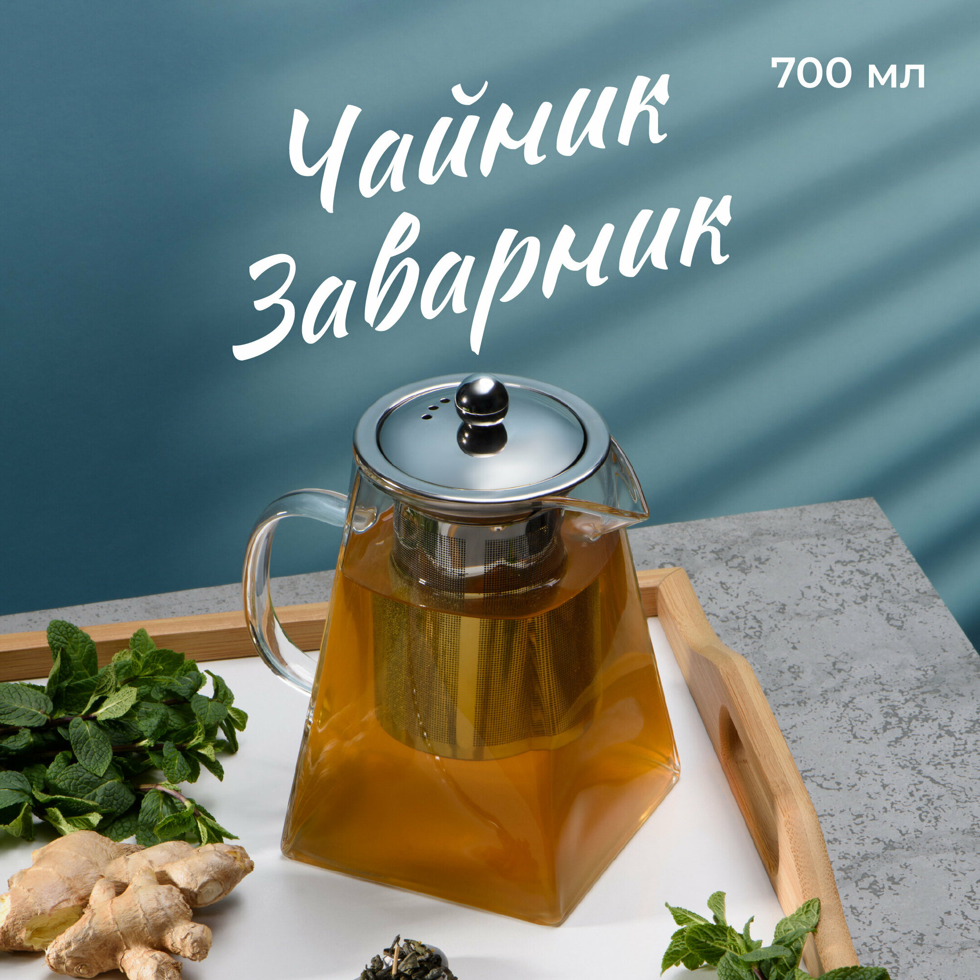 СохранитьЧайник заварочный с металлической крышкой, Limpid Side, Стеклянный чайник для заварки с фильтром, 700 мл интересное: