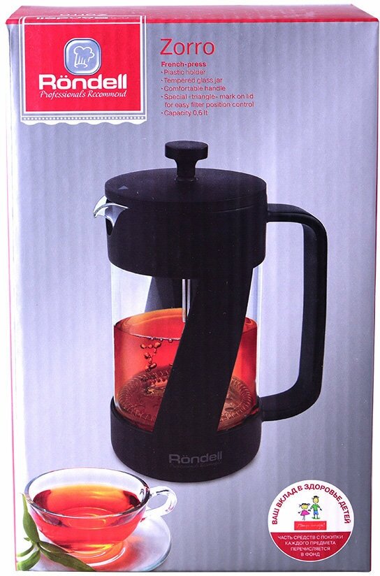 Френч-пресс Rondell Zorro RDS-1064, 0.6л, черный интересное: