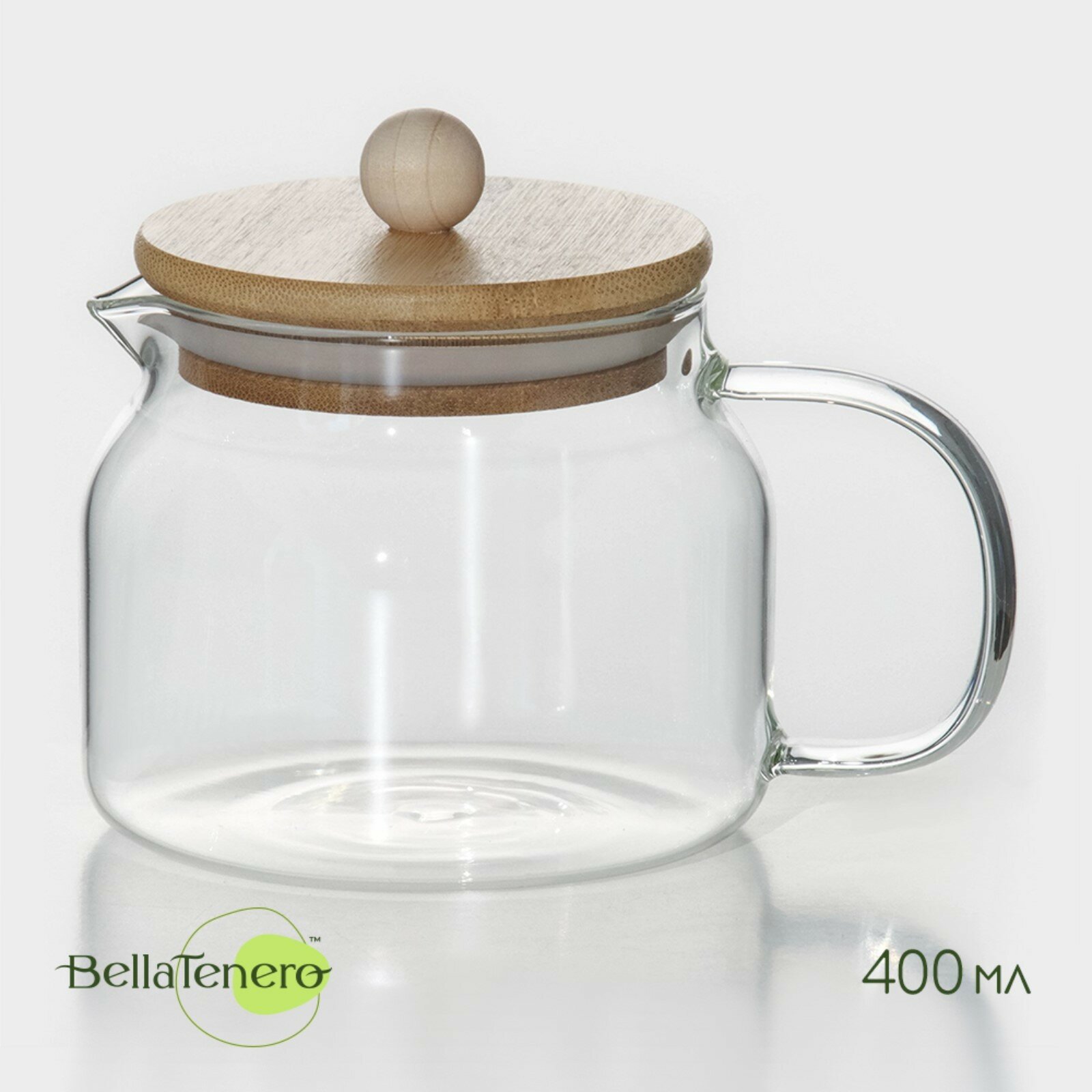Чайник заварочный стеклянный с бамбуковой крышкой BellaTenero «Эко», 400 мл, 13,5×10×10,5 см