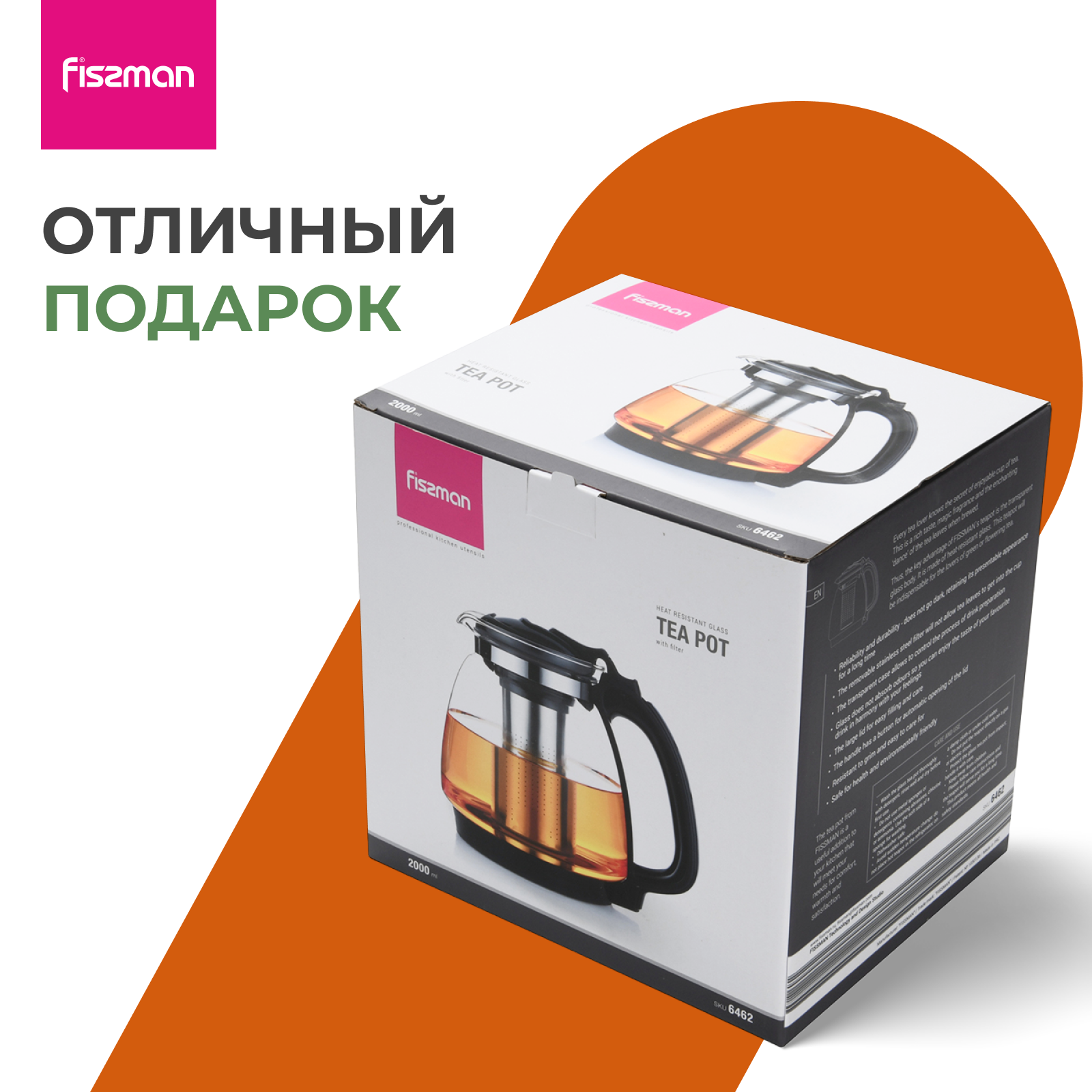 FISSMAN Заварочный чайник стеклянный 2 л интересное: