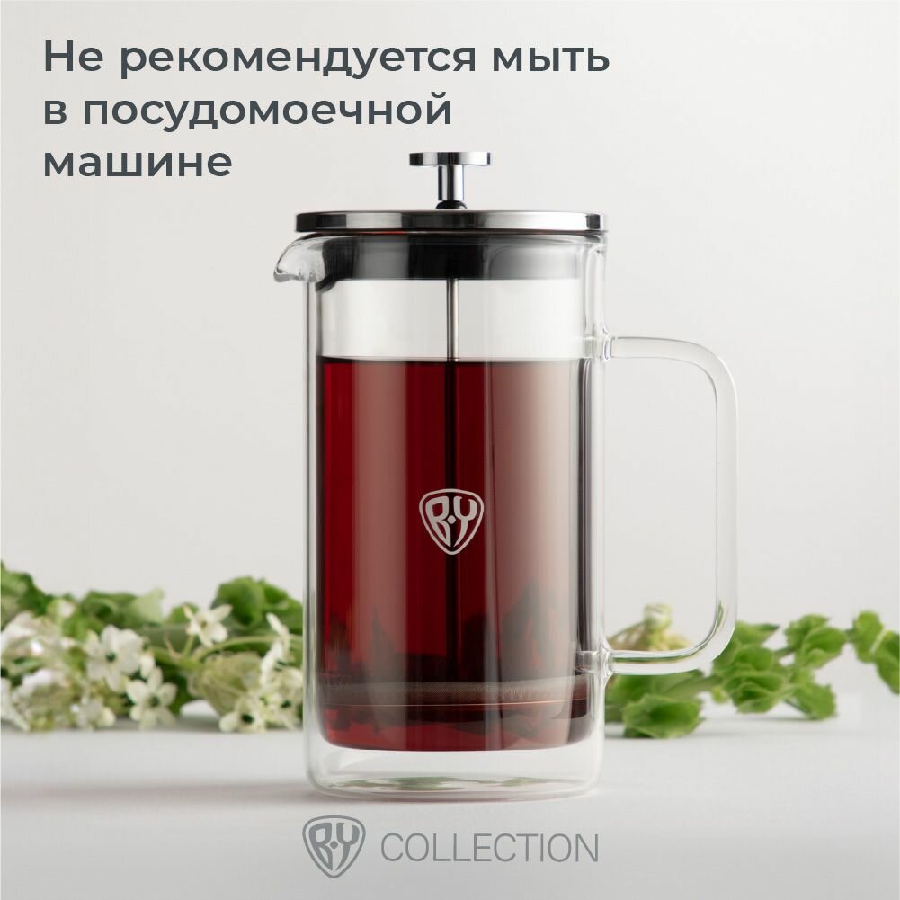 Френч-пресс с двойными стенками 1000 мл BY COLLECTION, жаропрочное стекло, заварочный чайник для кофе и чая интересное: