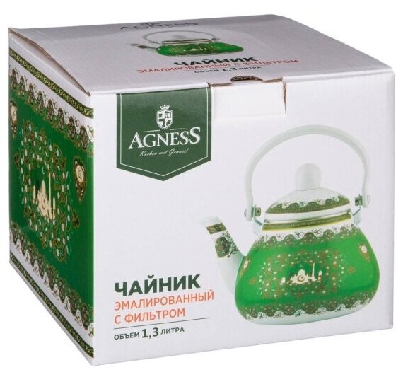 Чайник Agness Дворцовый парк эмалированный, с фильтром из нержавеющей стали, 1,3 л (934-430)