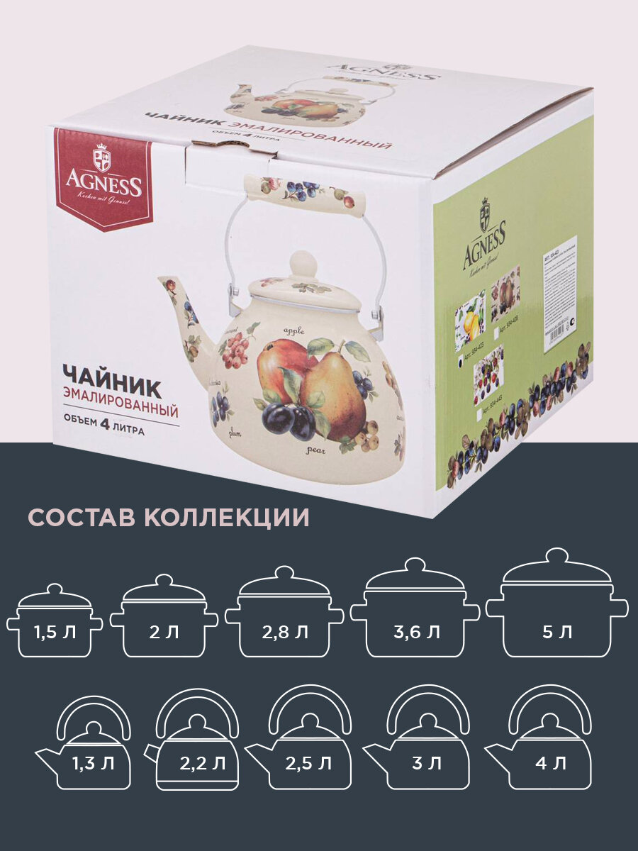 Купить Чайник эмалированный 934-428 agness серия фрукты 4 л