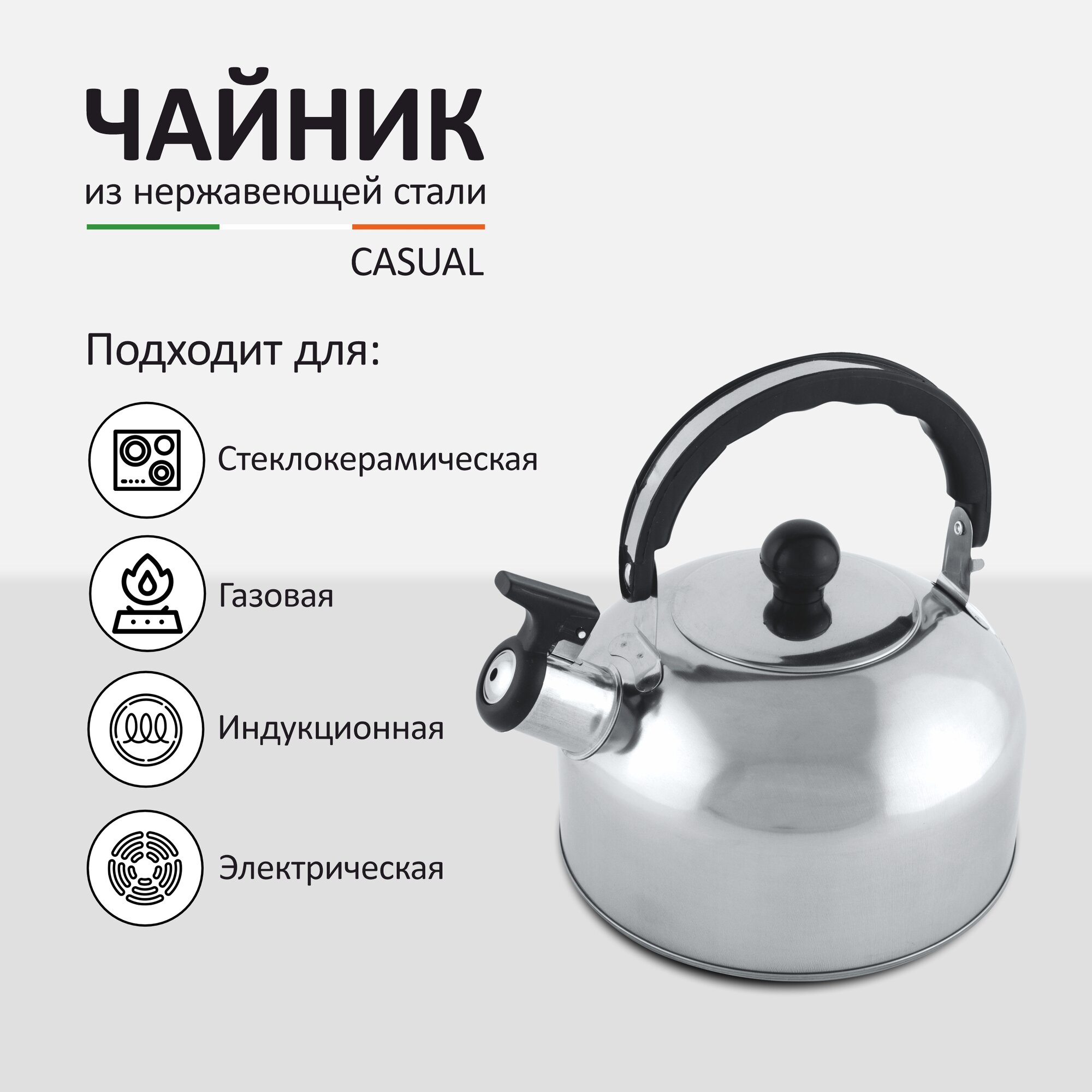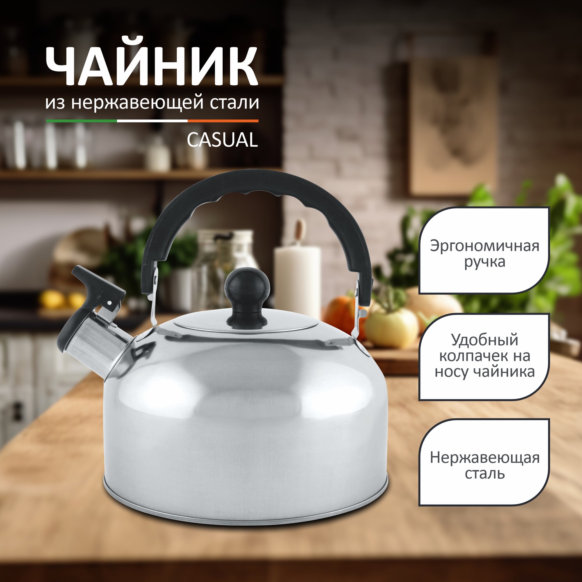 Чайник CASUAL, объем 2.5 л, из нерж стали со свистком, зеркальная полировка интересное: