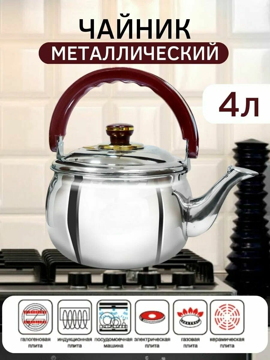 Чайник со свистком KELLI KL-3108 4,0 л, серебристый