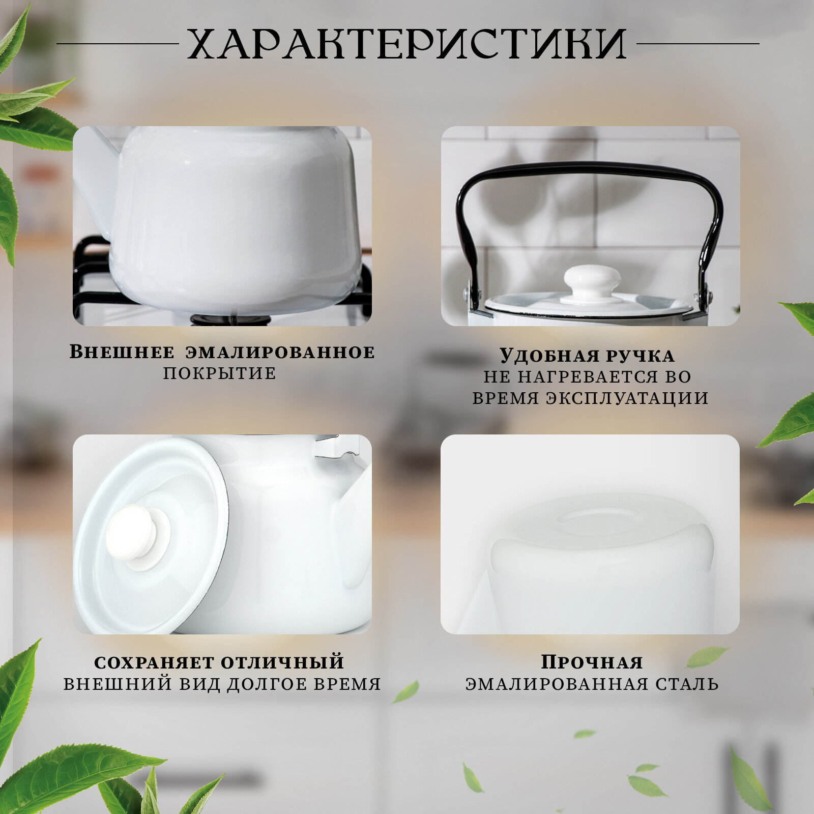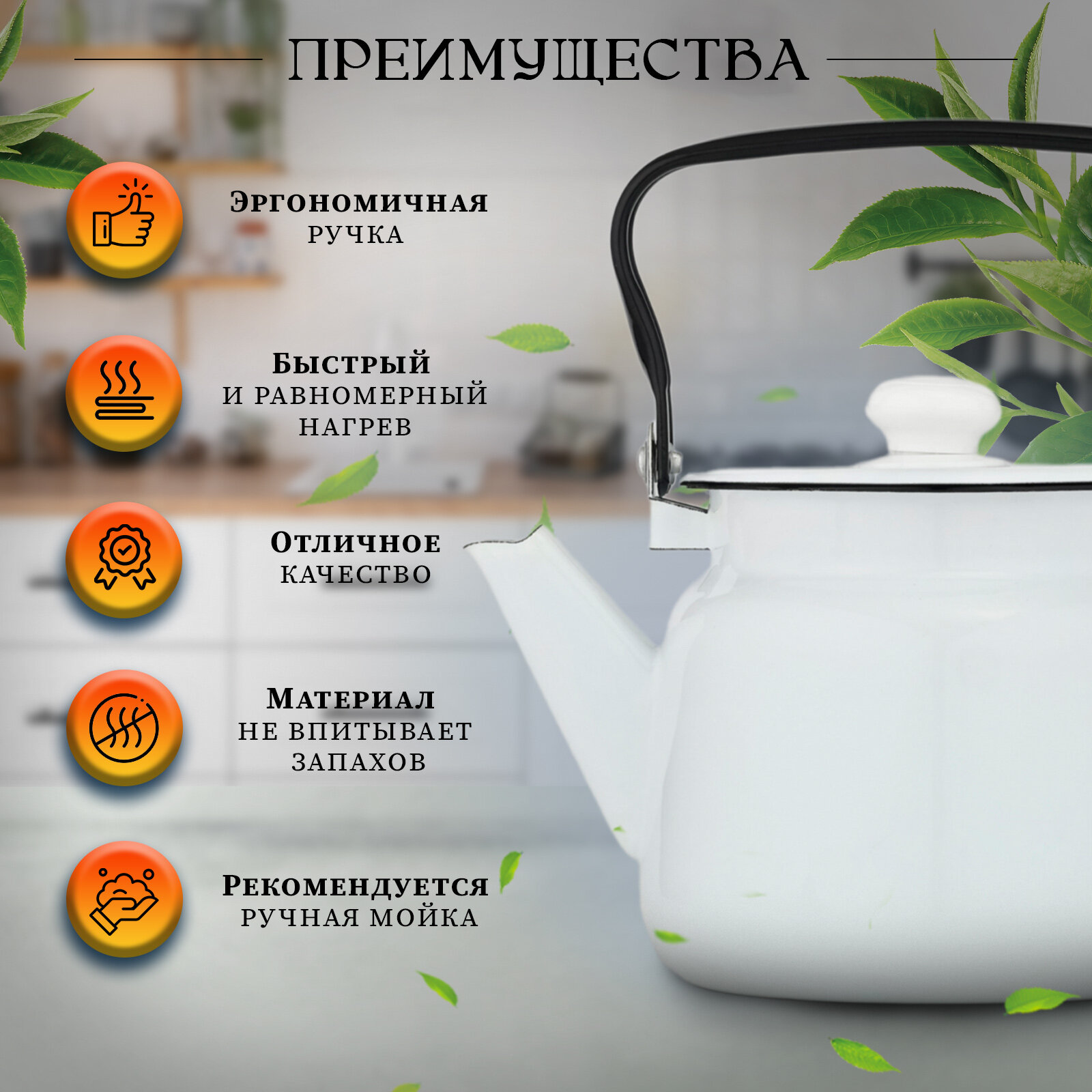 Чайник, 2.3 л, без деколи, эмалированная крышка, цвет белый интересное: