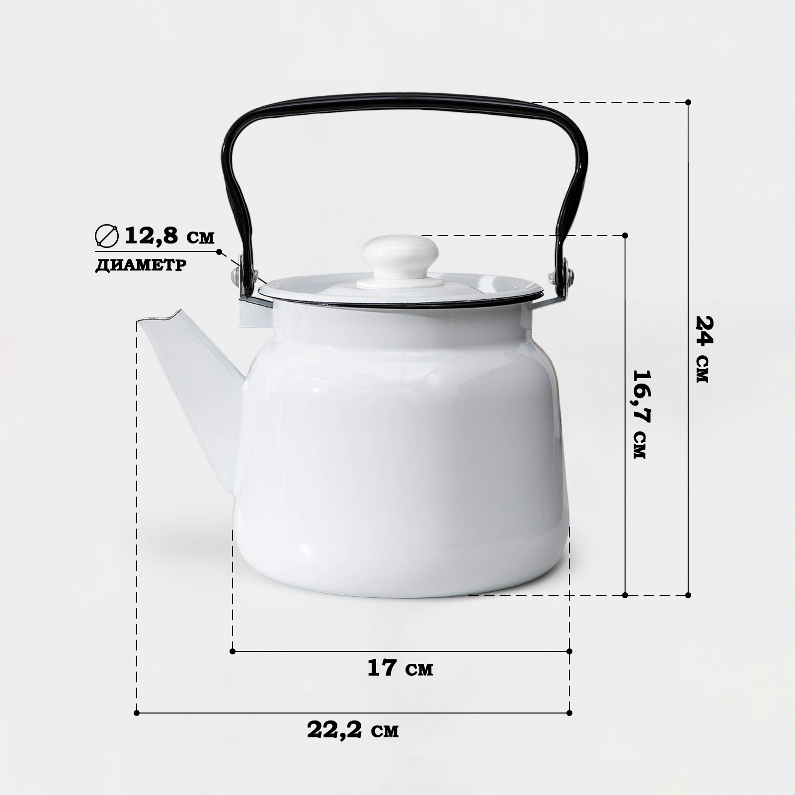 Чайник эмалированный, 2.3 л, без деколи, цвет белый