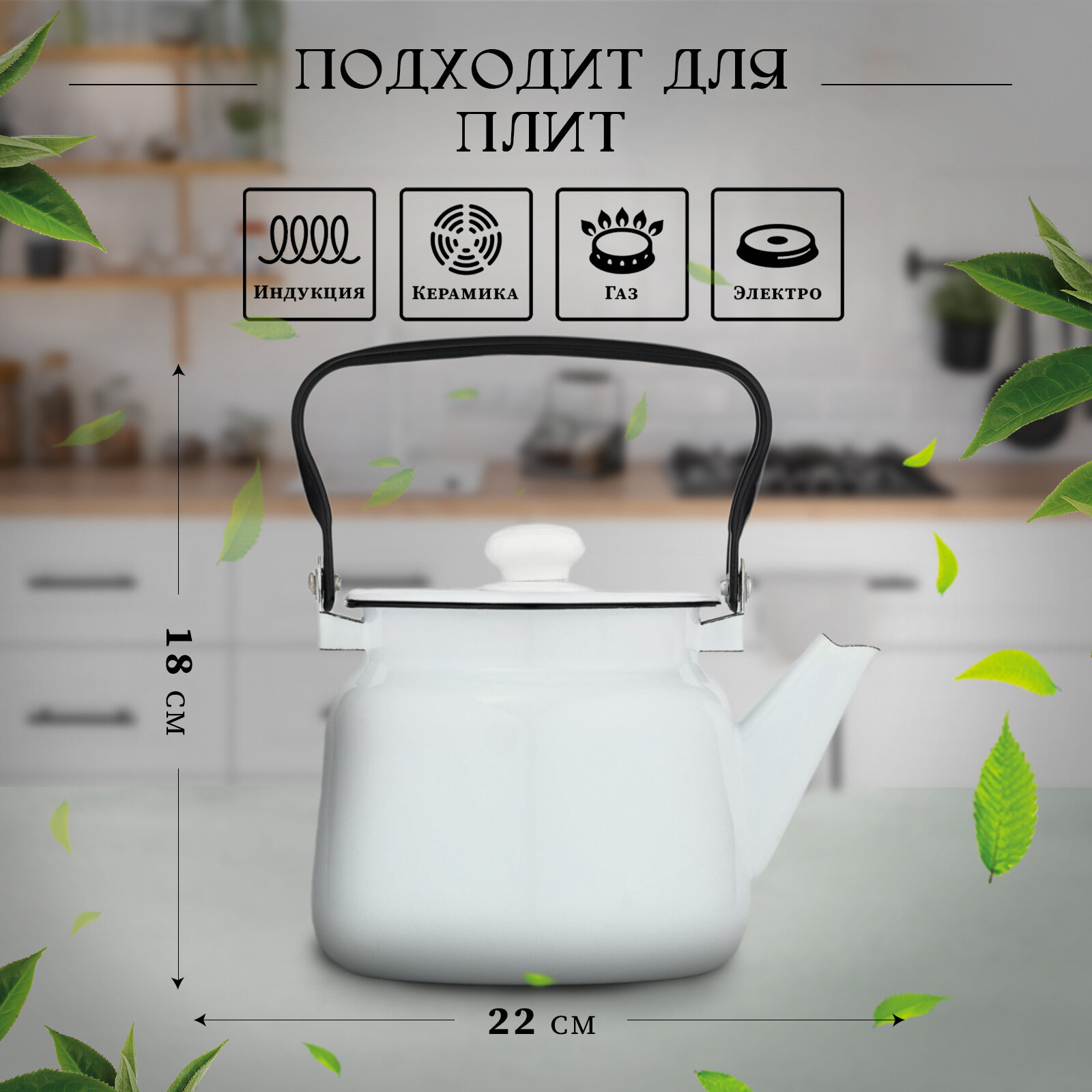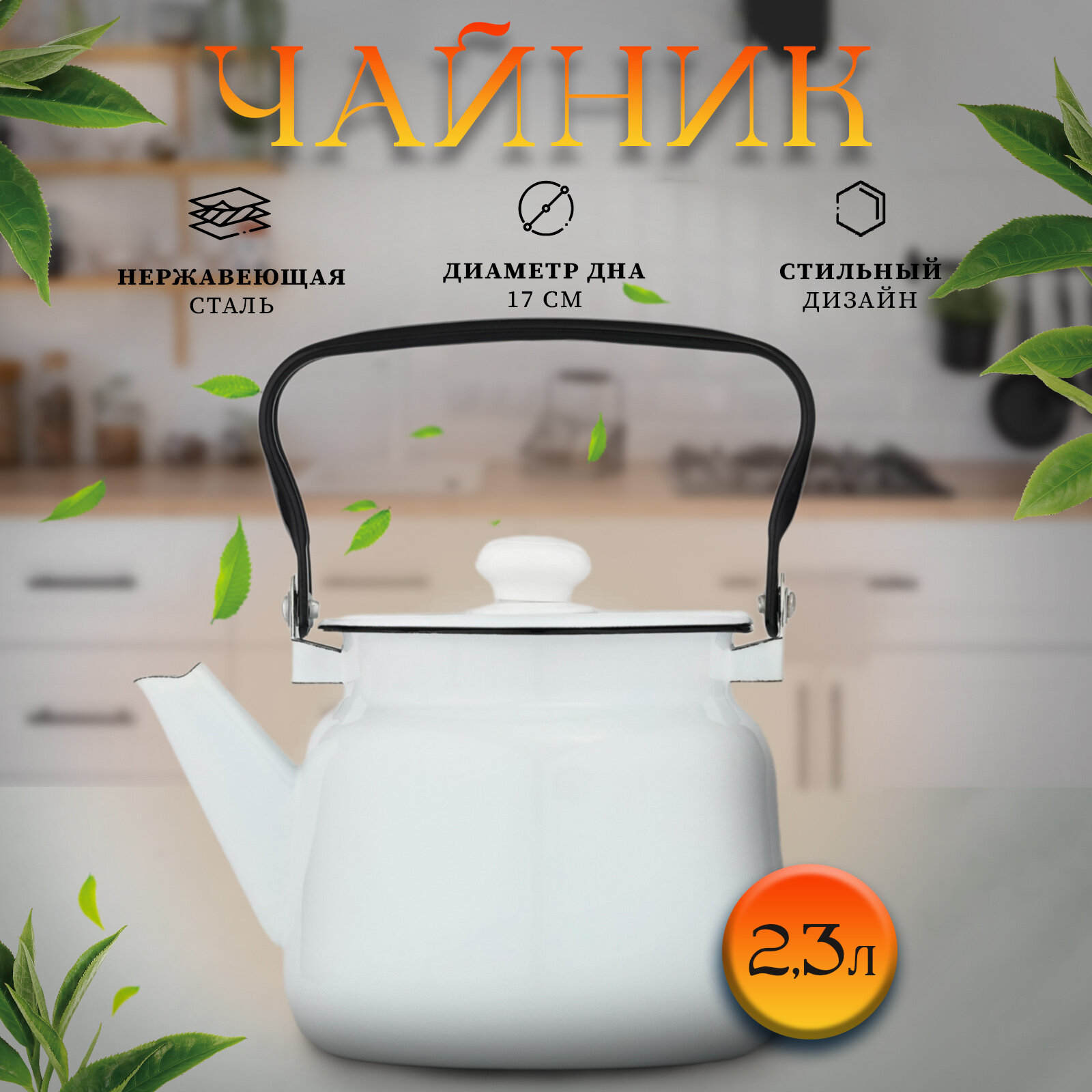 Купить Чайник, 2.3 л, без деколи, эмалированная крышка, цвет белый