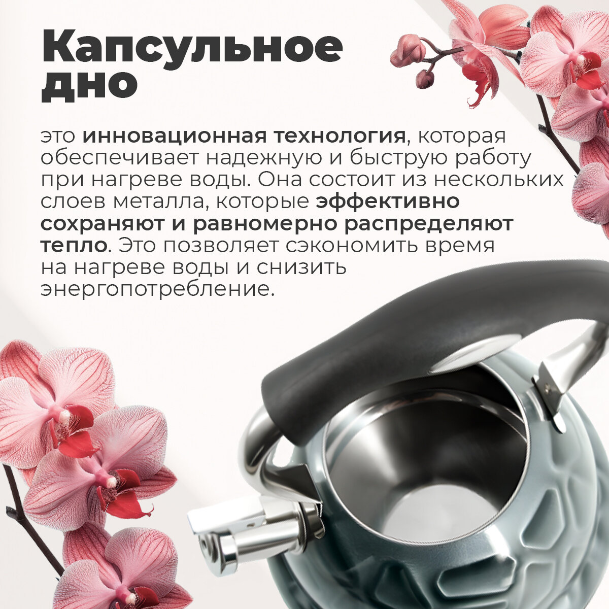 Чайник для плиты со свистком Pomi d’Oro, 2,8 литра с капсульным дном