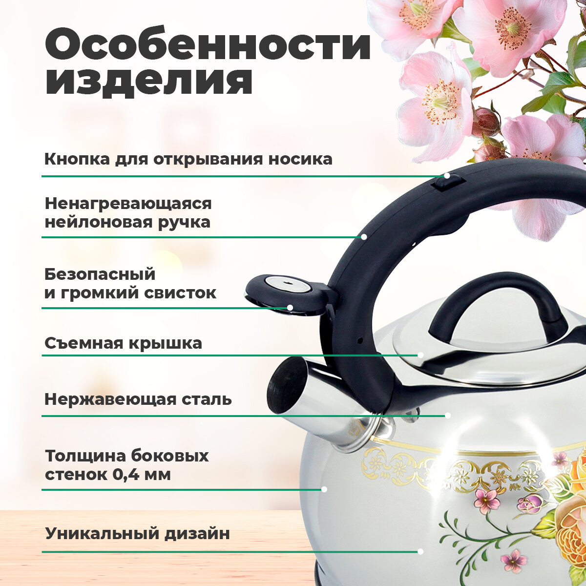 СохранитьЧайник со свистком для плиты , 3л Pomi d'Oro P-650197 Napoli, Розы, с индукционным дном интересное: