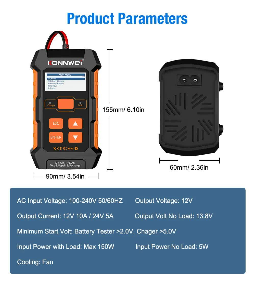Тестер аккумуляторных батарей АКБ Konnwei KW520 для всех автомобилей 12V 10A 24V 5A