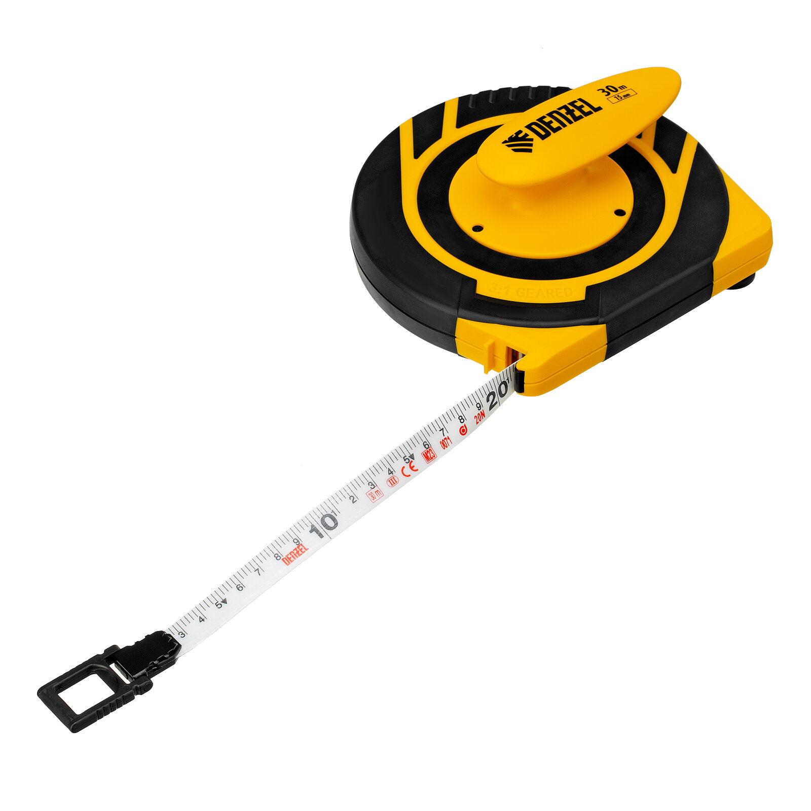 Купить Рулетка геодезическая DENZEL 30 м х 15 мм, закрытый корпус, фиберглассовая лента 31291
