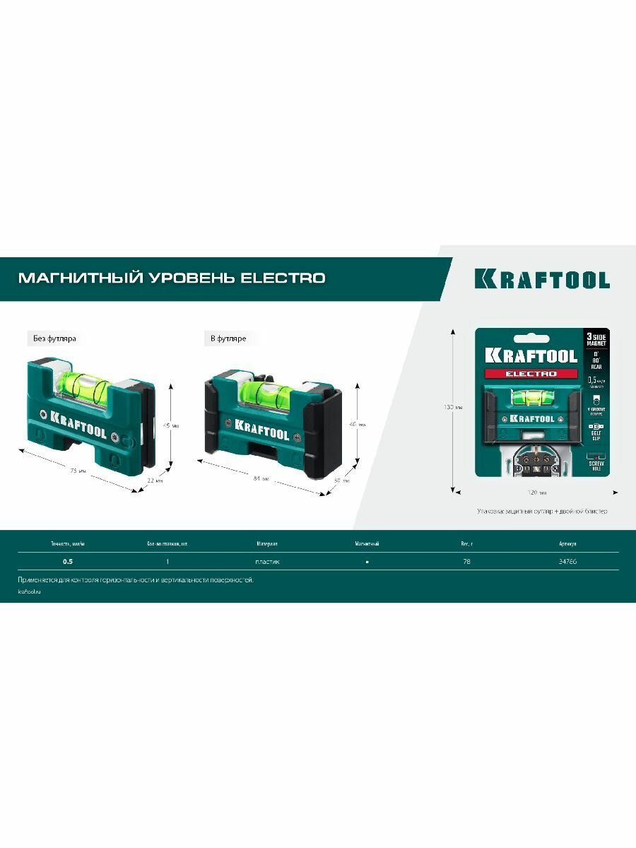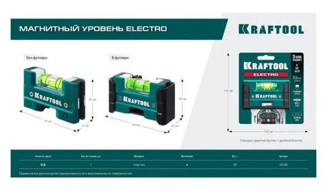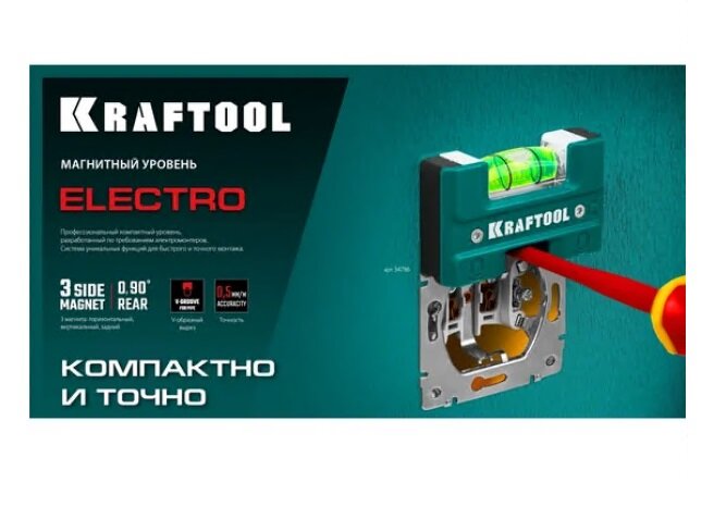 KRAFTOOL Electrо 76 мм, магнитный уровень (34786) интересное: