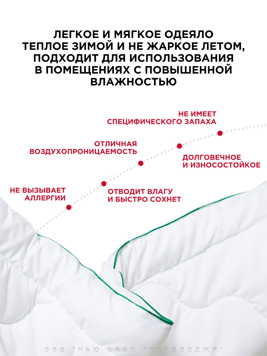 Одеяло Мир Матрасов Green Bamboo, 2-х спальное, 200х220см, белое