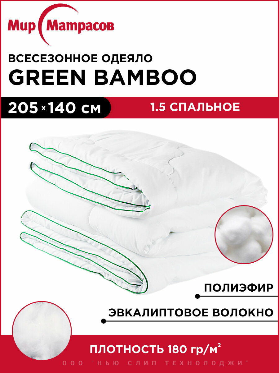 Одеяло Мир Матрасов Green Bamboo, 1,5 спальное, 140x205 см, белое
