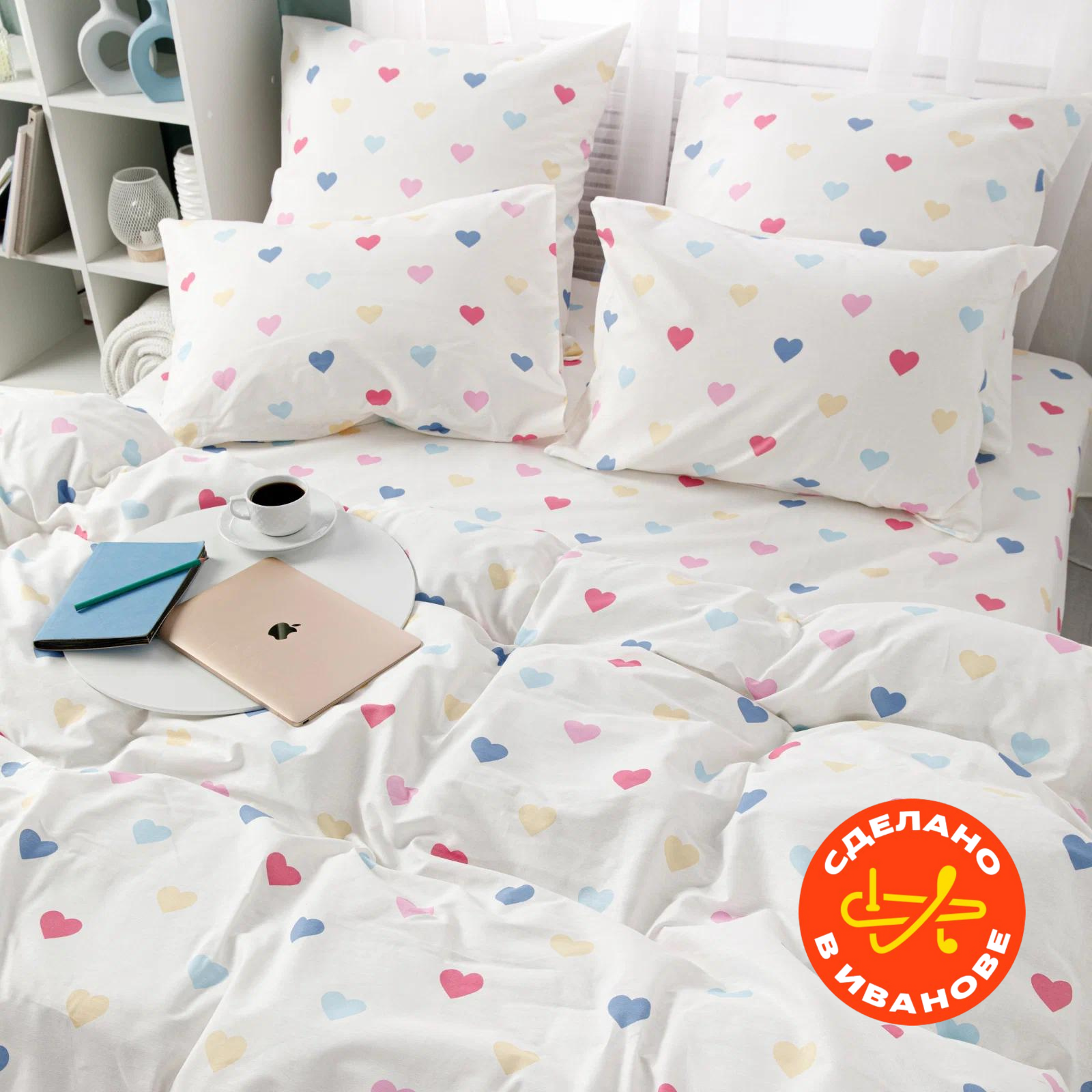 Постельное белье Веселина, Влюблённость, бязь, семейное, наволочки 50х70, 100% хлопок