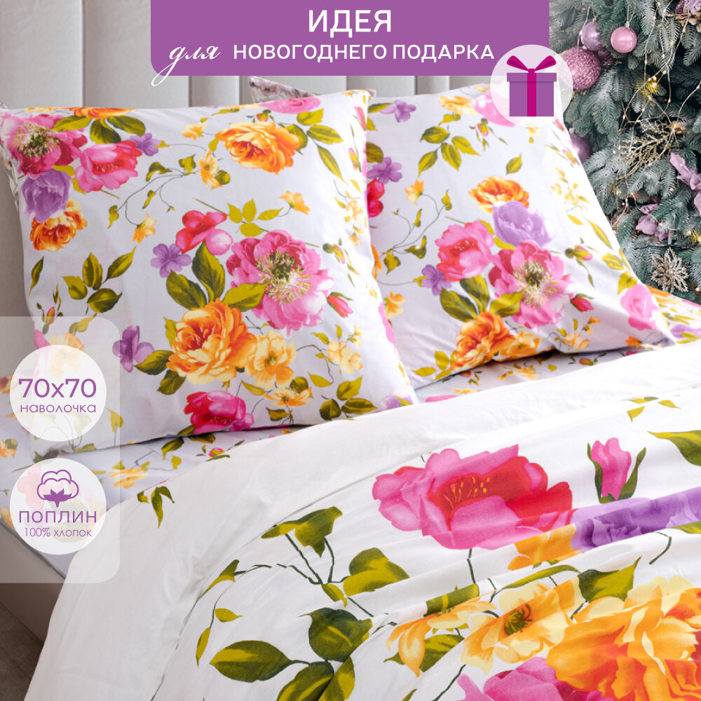 Постельное белье Василиса Евро, Поплин, наволочки 70х70 см, Акварель