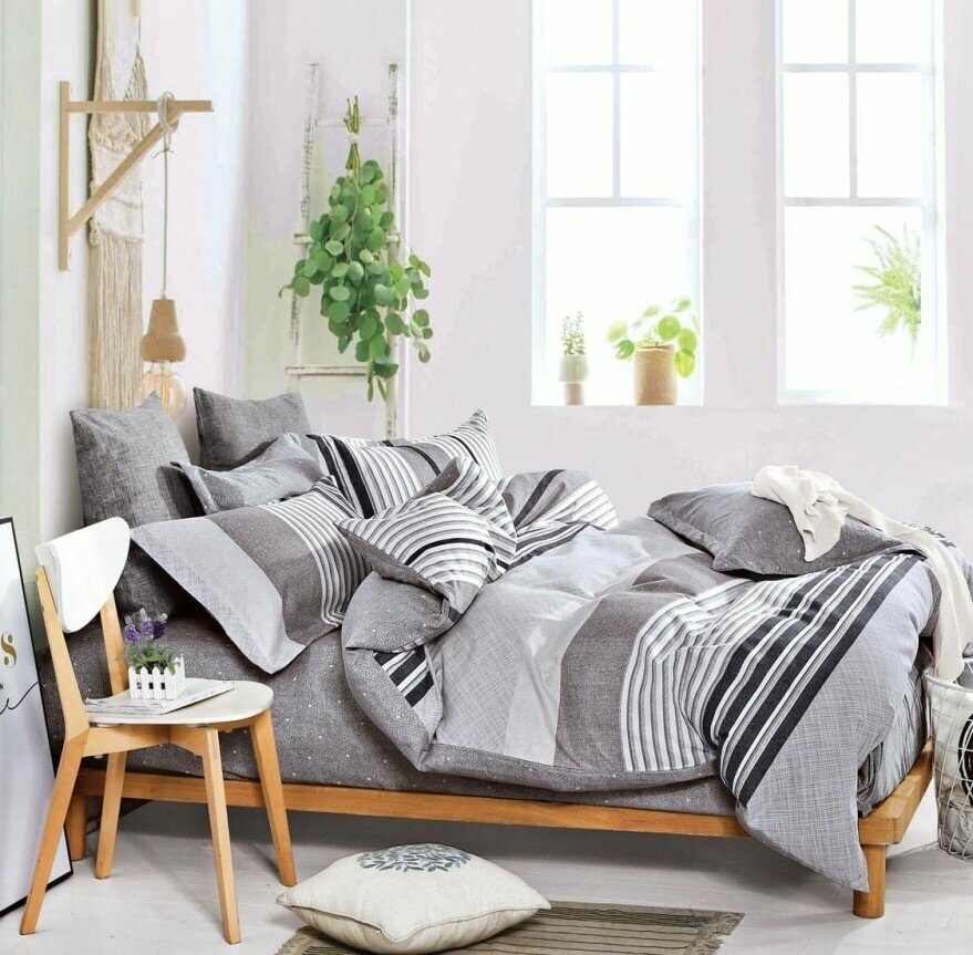 Комплект постельного белья Denvol 1.5 спальный-Сатин пододеяльник 150х215 на молнии, простыня на резинке 90х200(+25), 2 наволочки 70х70, белый, серый, черный