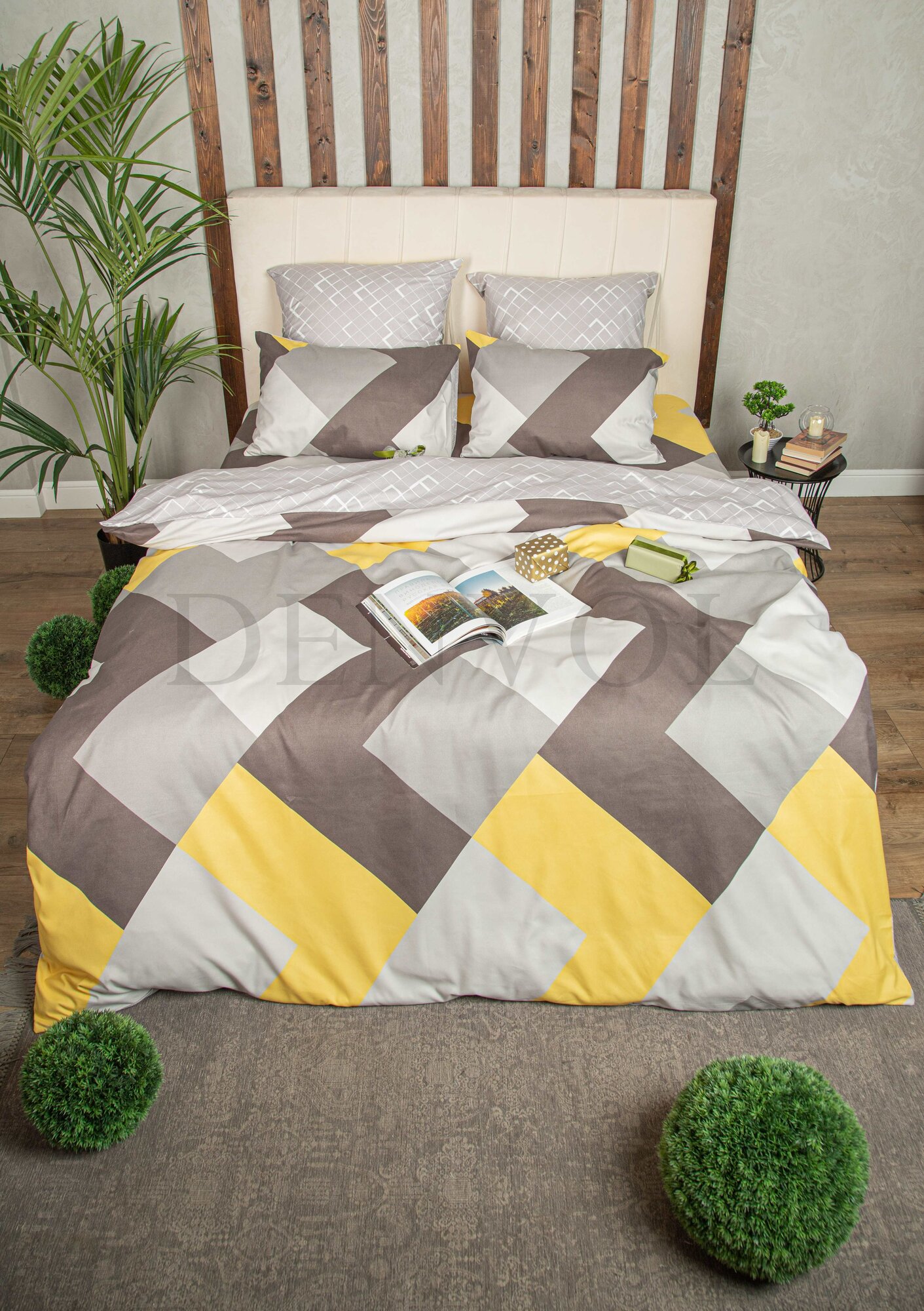Комплект постельного белья Denvol Сатин-люкс 2-х спальный, пододеяльник (на молнии) 180х220 см.-1шт. Простыня (на резинке по кругу) 160х200(+25) см.-1шт. Наволочки (без ушек) 70х70 см.-2шт. серый, желтый, белый