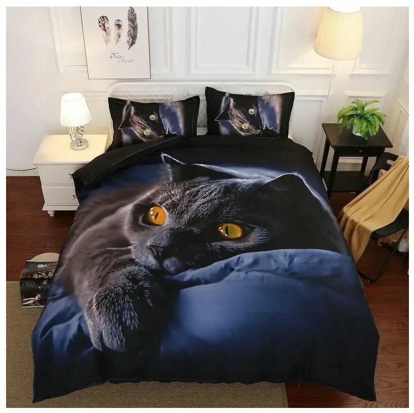 Купить Комплект Постельного Белья Евро Кошка Желтые Глаза / Евро / Простыня 220x240 / Пододеяльник 200x200 / Наволочки 70x70-2