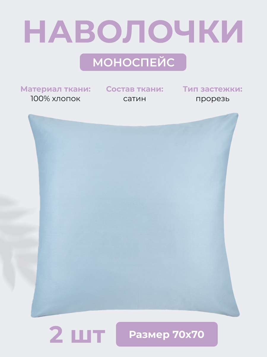 Наволочки 70х70 см Моноспейс, комплект из 2х шт, однотонные (аналог икеа), Нежно-голубой, 100% хлопок, сатин, Ecotex