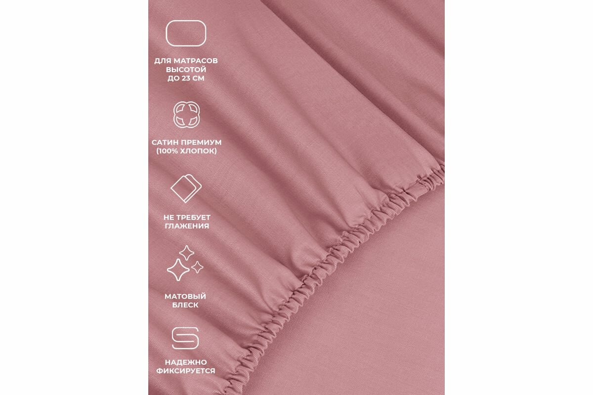 Простыня на резинке Моноспейс ECOTEX "Пудровый", 160*200*23, сатин