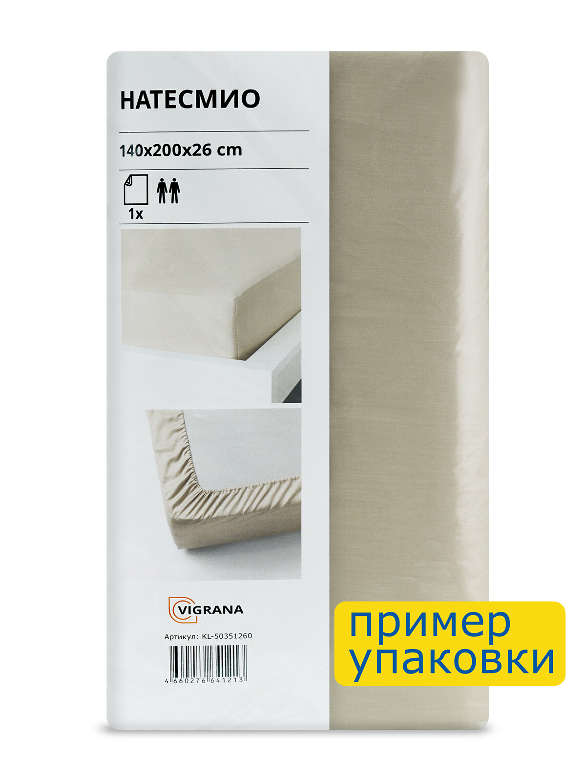 Простыня на резинке 140x200 натесмио (икеа NATTJASMIN) светло-бежевый сатин, лиоцелл KL-40442732