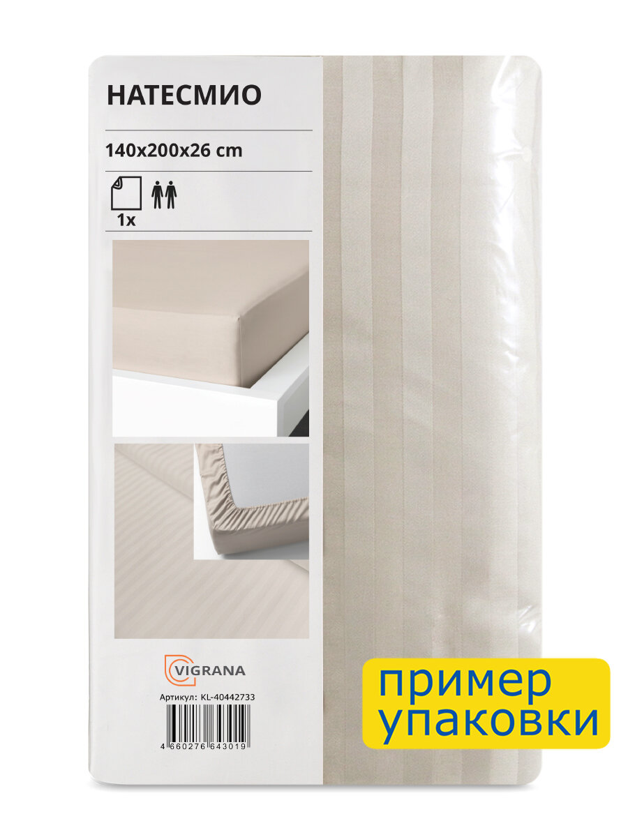 Купить Простыня на резинке 140x200 натесмио (икеа NATTJASMIN) светло-бежевый страйп сатин, лиоцелл KL-40442733