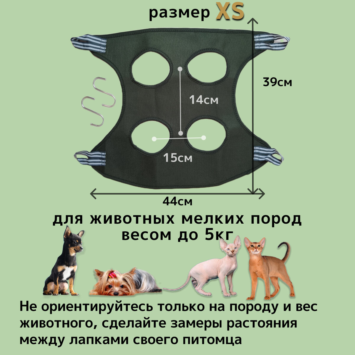 СохранитьПодвесной гамак для груминга домашних животных, Гамак для стрижки когтей на крючках, размер ХS, хаки интересное: