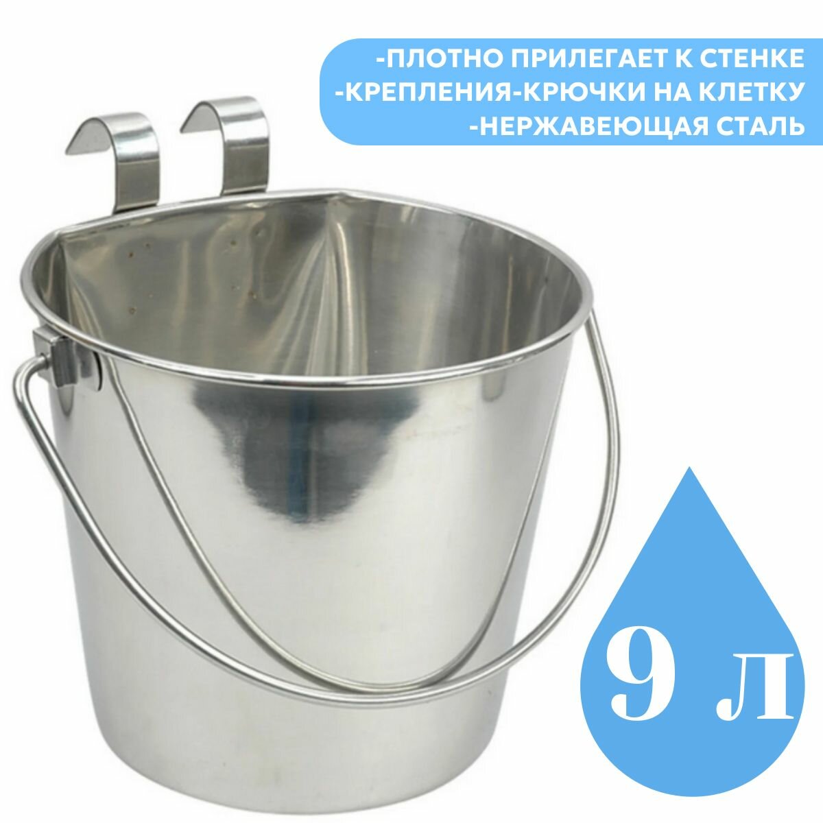 Купить Ведро Mr. Kranch из нержавеющей стали с креплением для клеток и вольеров 9,8 л Mr. Kranch 4630147171330